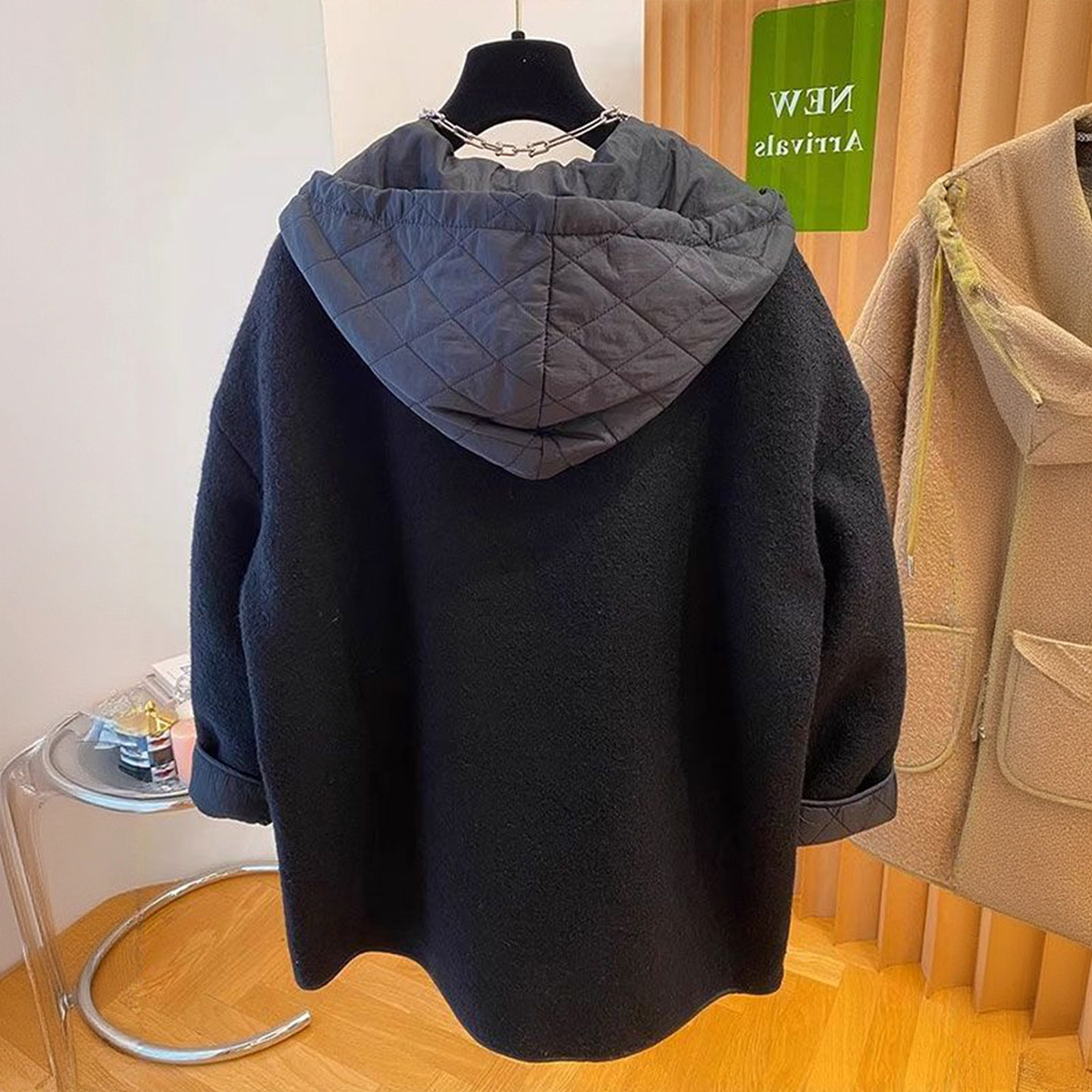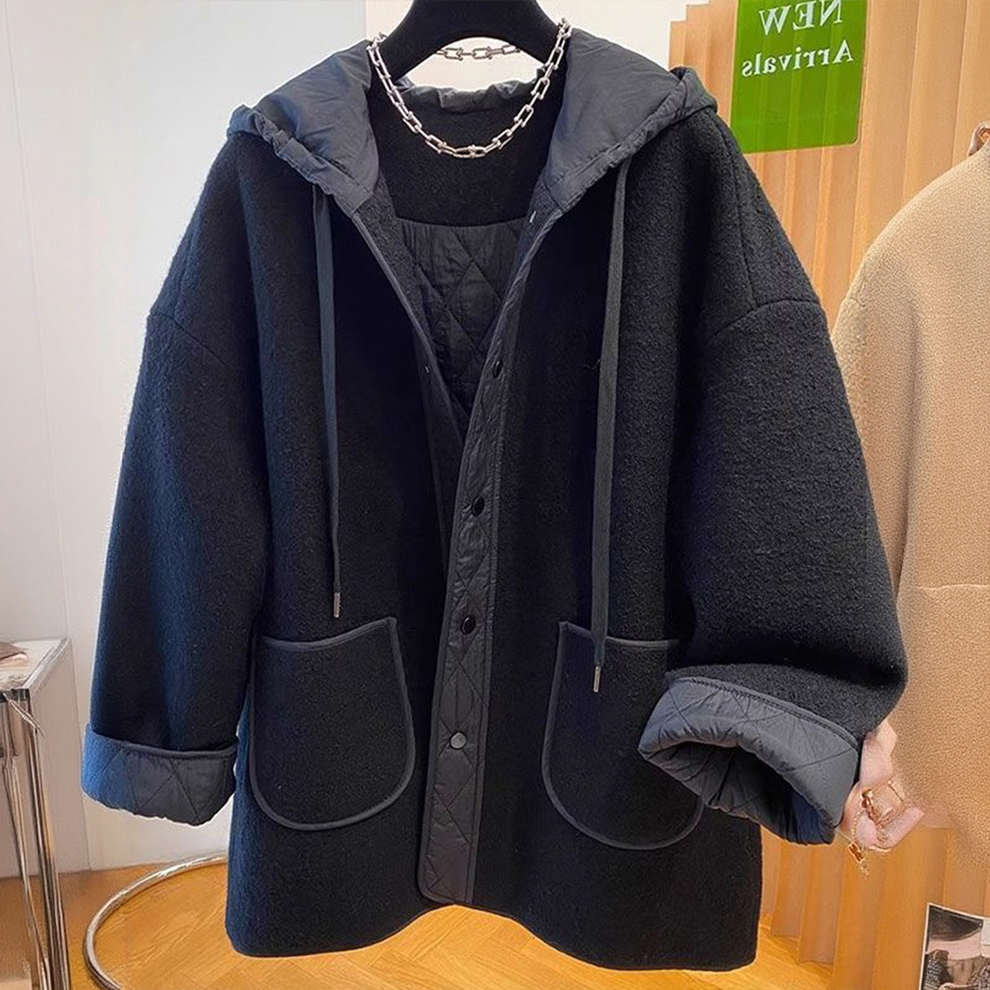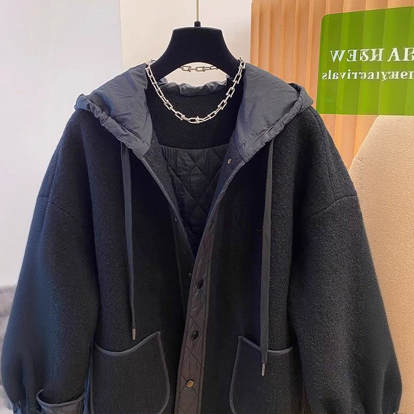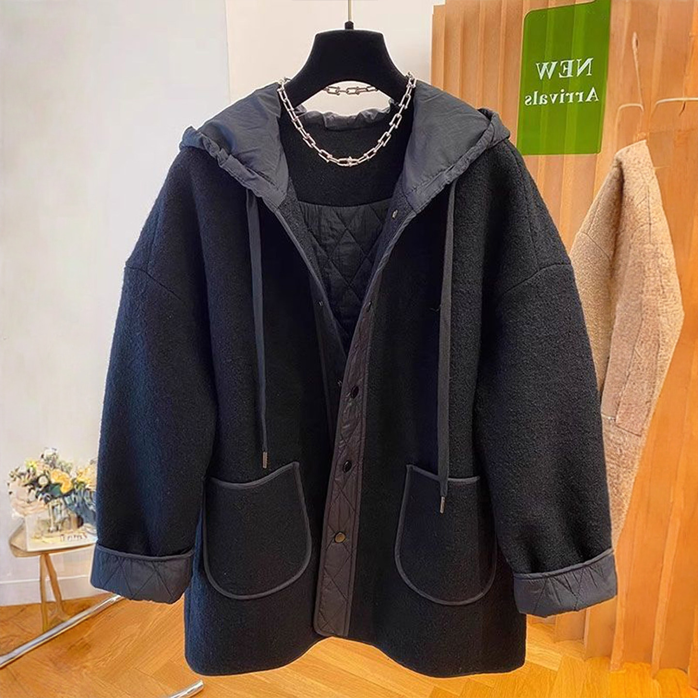 300斤大码女装黑色羊羔毛厚外套女胖mm时尚百搭宽松连帽保暖棉服