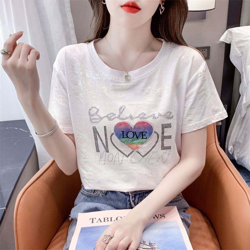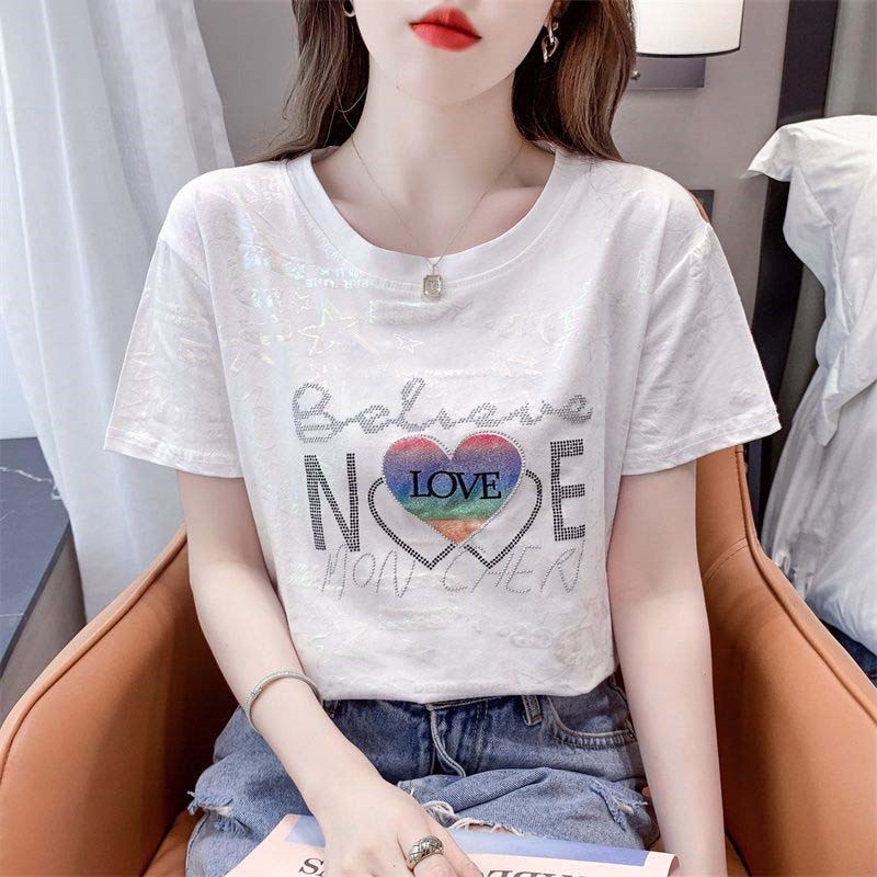 白色纯棉短袖t恤女夏季新款宽松洋气百搭体恤时尚休闲印花上衣
