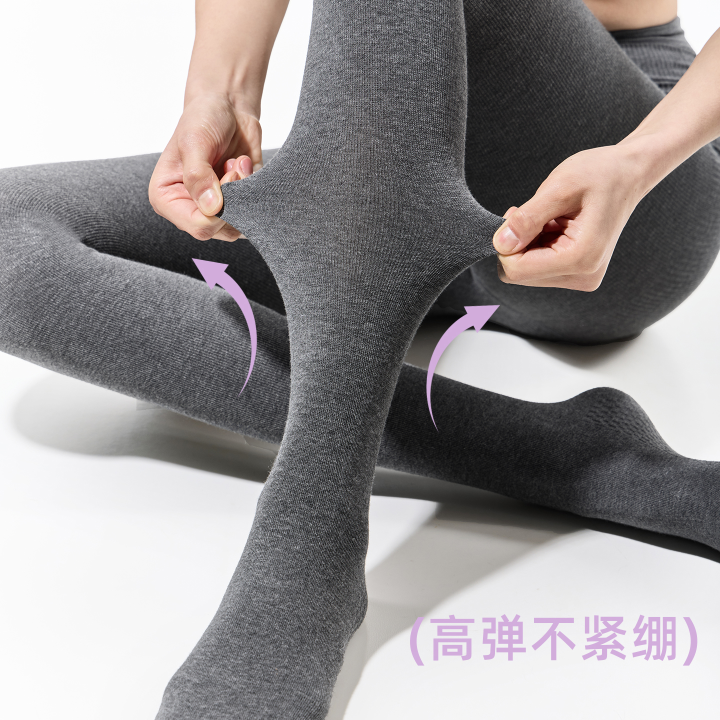 purpleguys白色裤袜女秋冬薄绒竖纹微压显瘦显高可外穿打底连裤袜