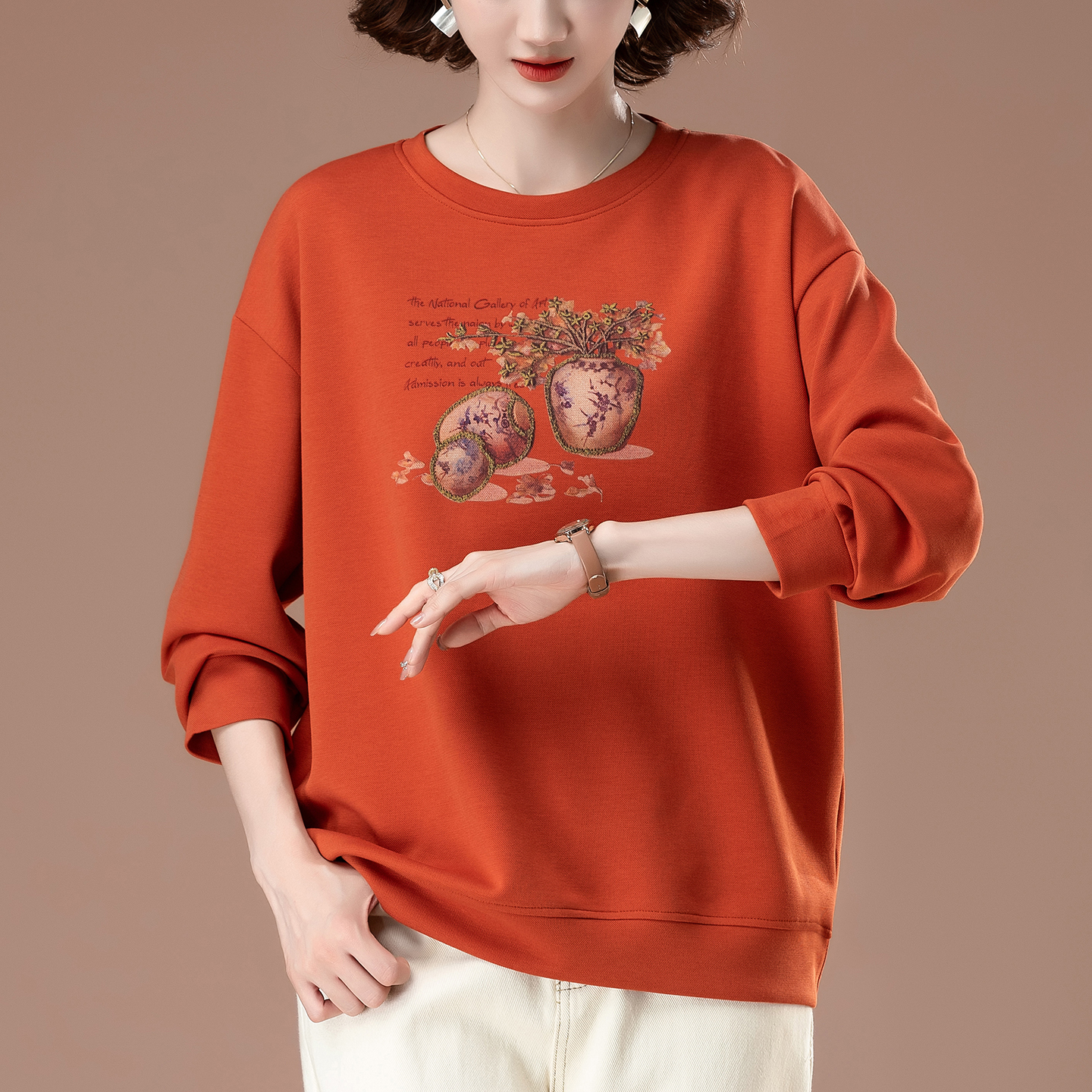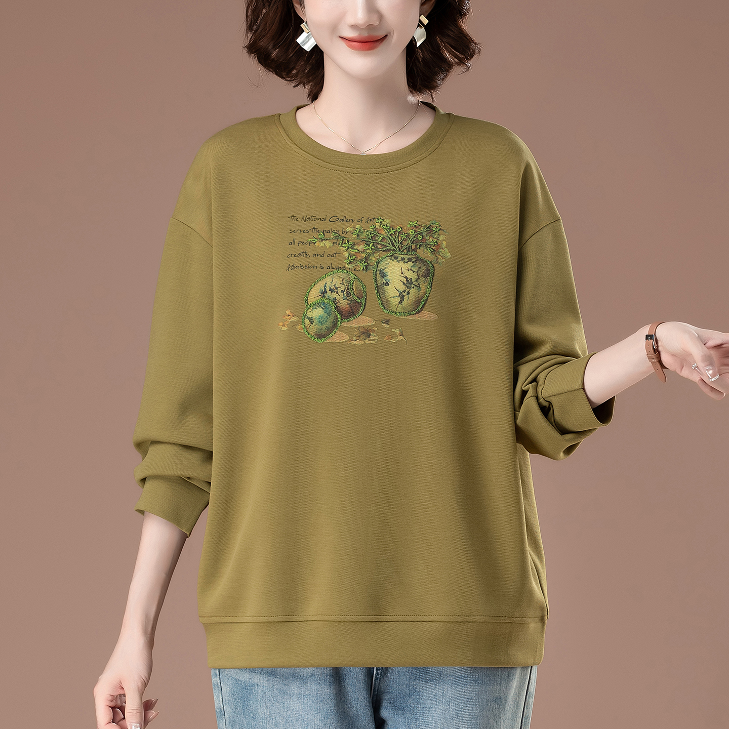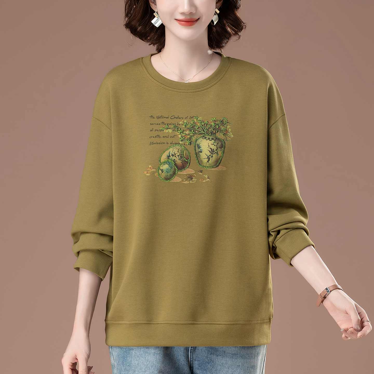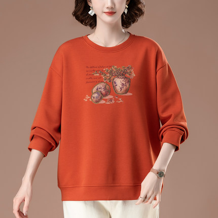 卫衣女春秋新款宽松加肥加大码中年妈妈洋气印花显瘦圆领上衣外套