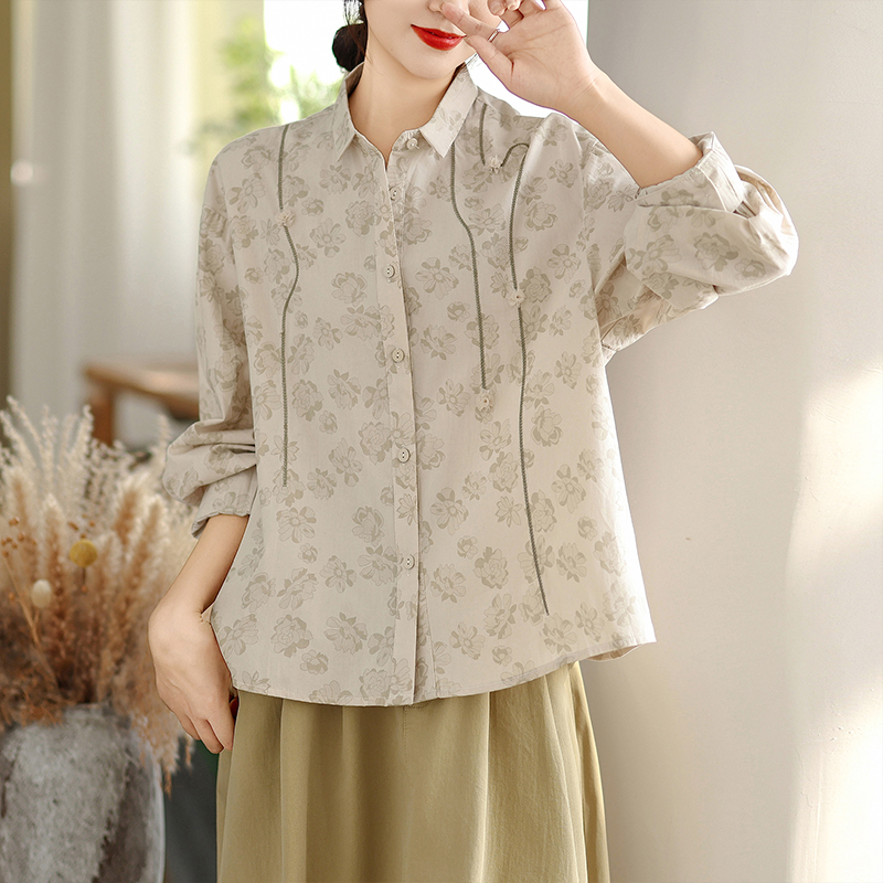 欧货立体刺绣碎花棉麻长袖衬衫女春秋大码胖mm宽松百搭衬衣上衣潮