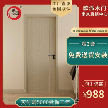 欧派木门 免漆2J系列实木复合门 室内静音木门定制 环保防潮正品