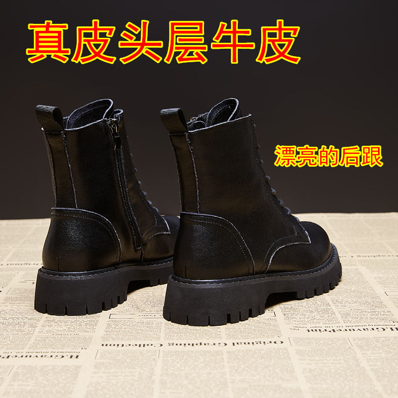 真皮马丁靴女2025年新款短靴英伦风加绒靴子秋冬黑色皮鞋保暖棉鞋