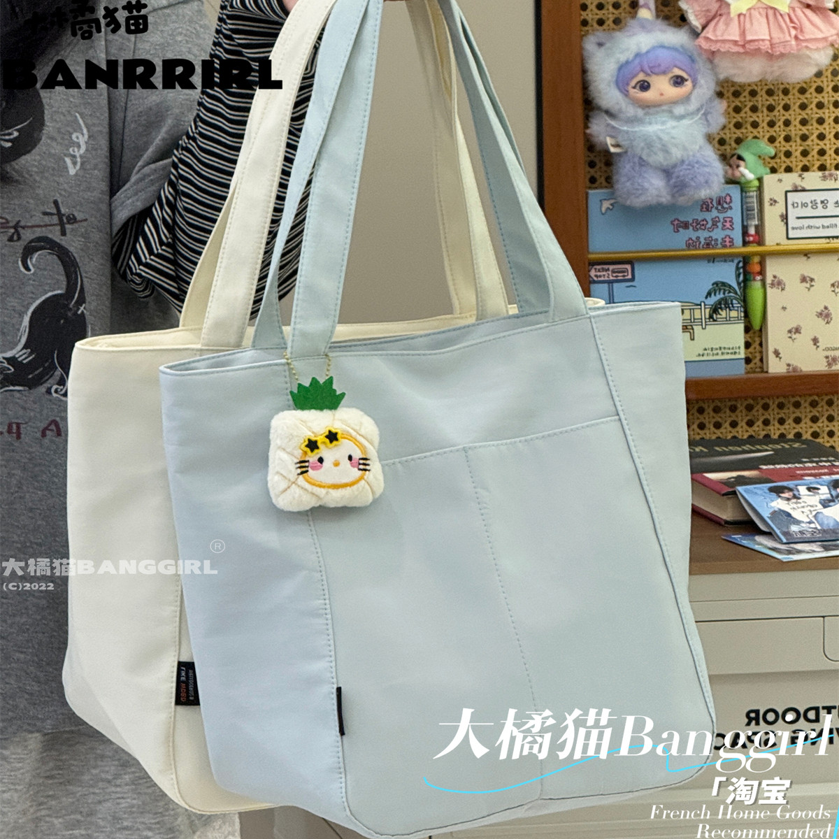 大橘猫日系ins简约休闲帆布包女大容量托特包学生通勤补课单肩包