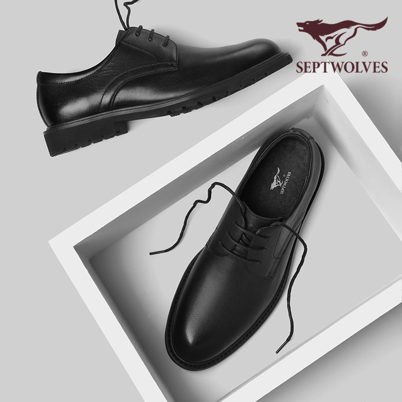 七匹狼软面真皮男鞋秋季黑色休闲皮鞋新款商务正装男士结婚新郎鞋