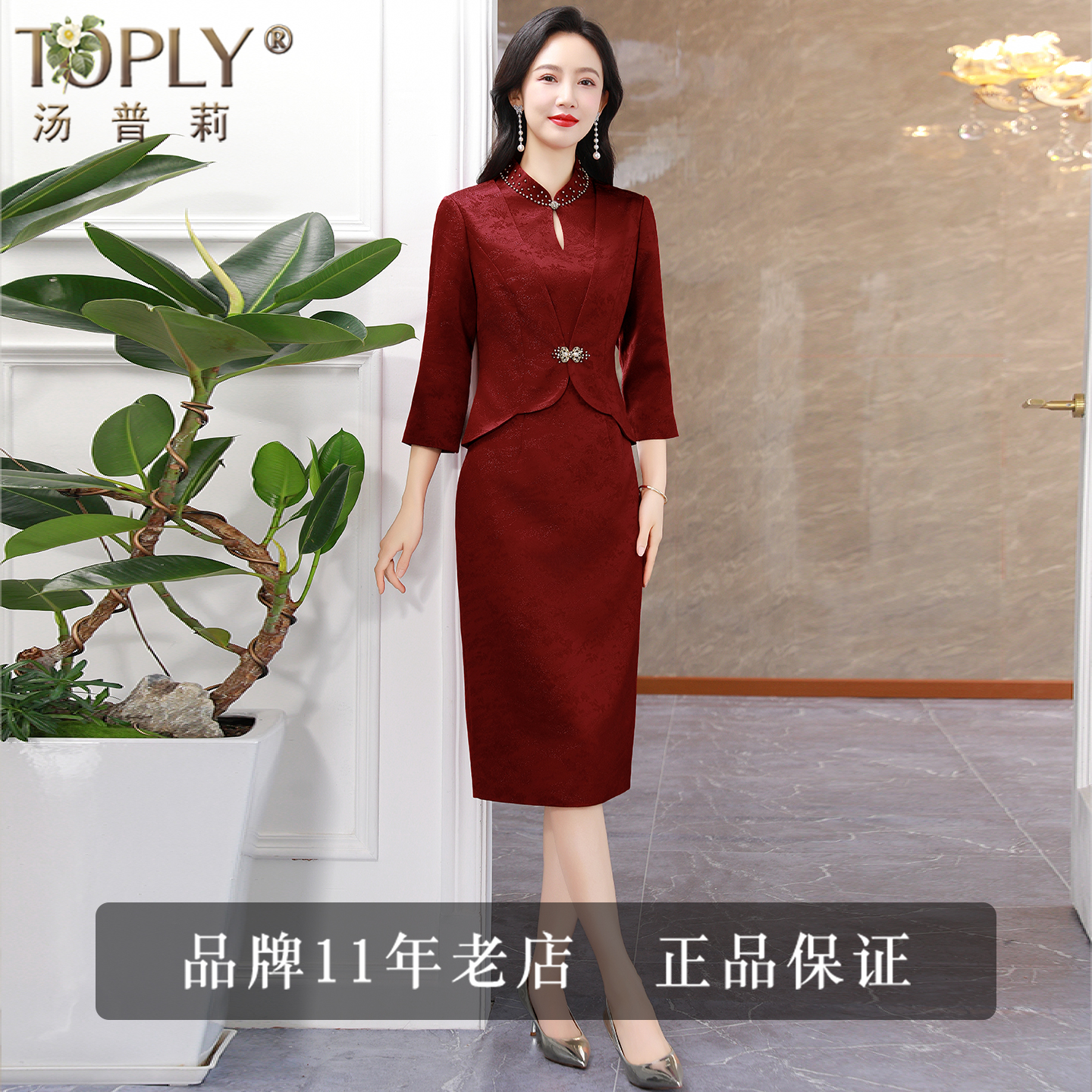 高端品牌喜婆婆婚宴礼服2025新款轻奢妈妈装结婚喜服假两件连衣裙