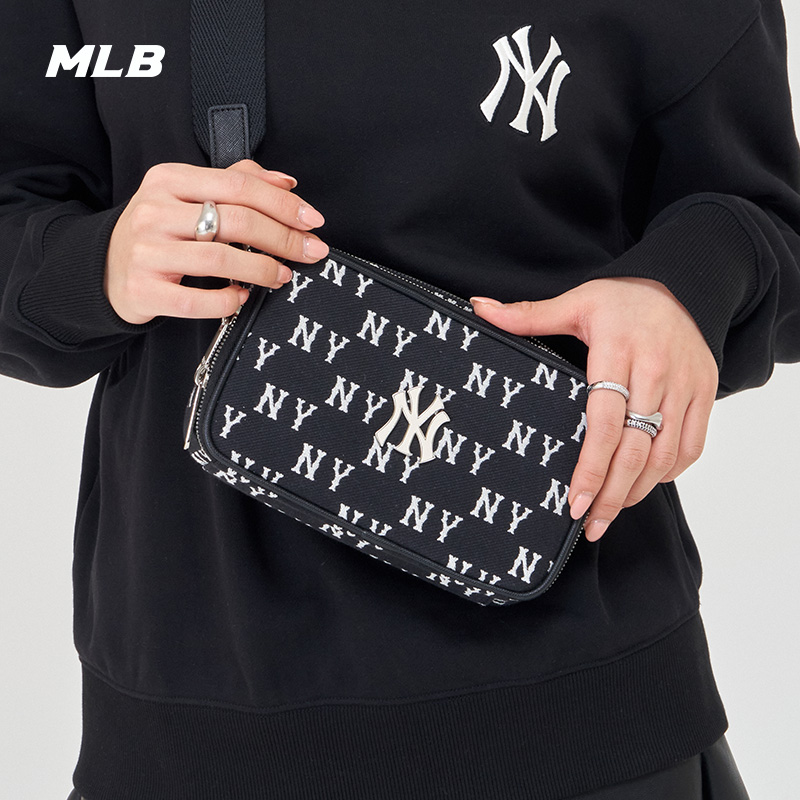 MLB官方 男女情侣暗纹老花斜挎包休闲百搭时尚潮秋冬CRS01