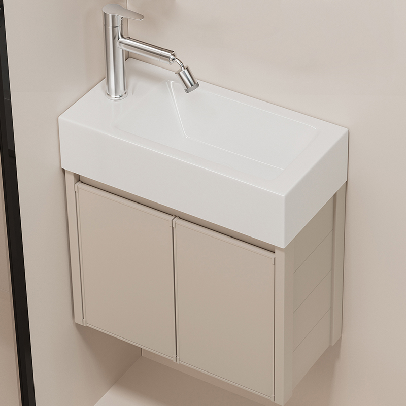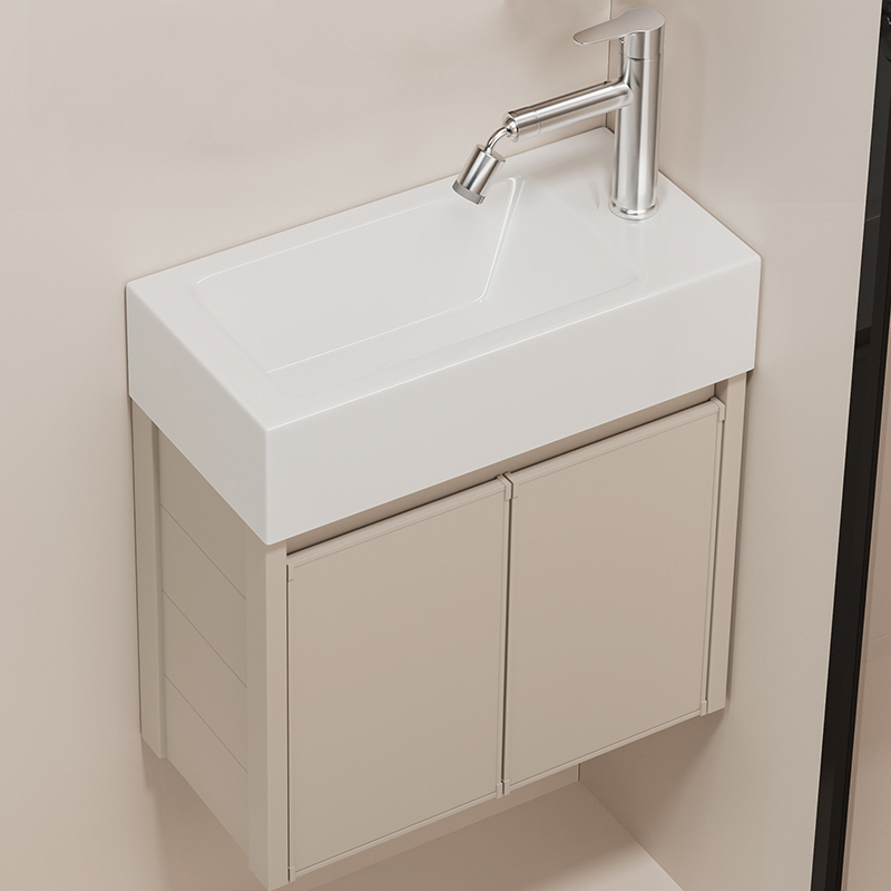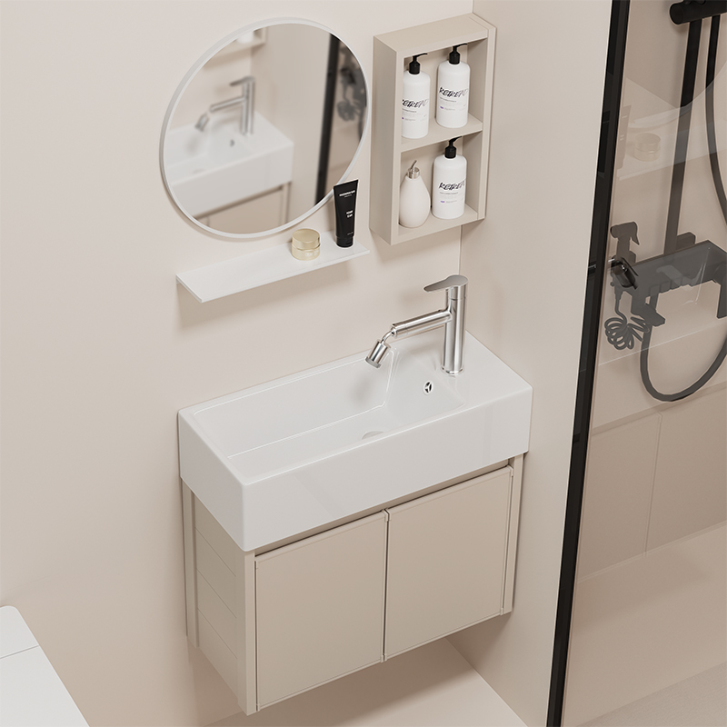 小户型窄边挂墙式陶瓷洗手盆柜奶油风防水太空铝浴室柜挂盆洗脸池