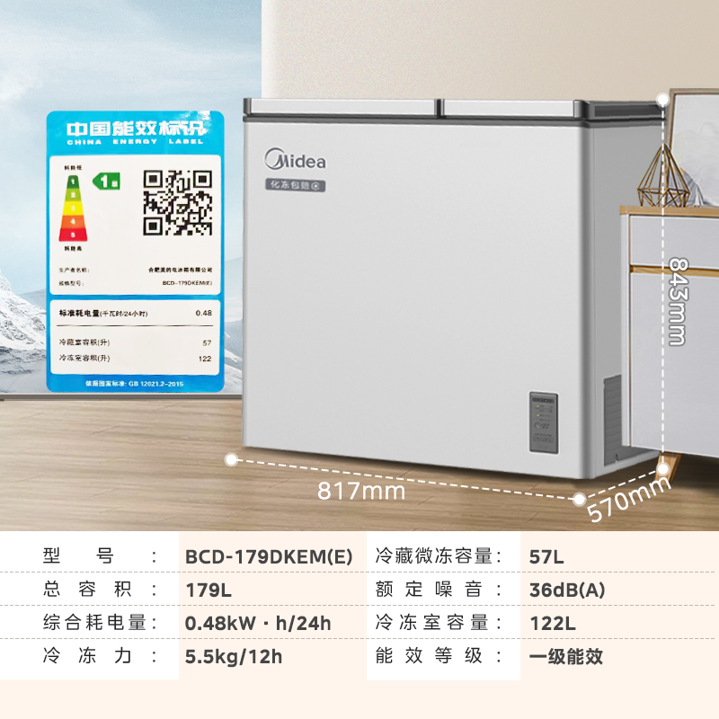 美的179升双温冰柜家用冷藏冷冻两用小型冷柜双用商用卧式小冰箱