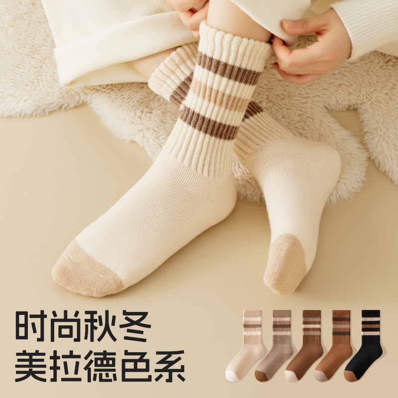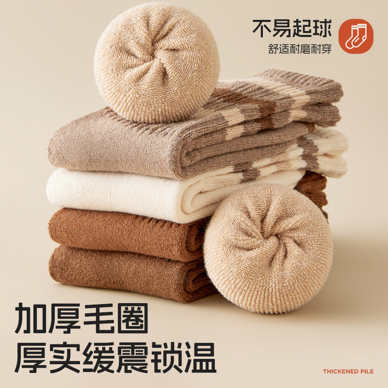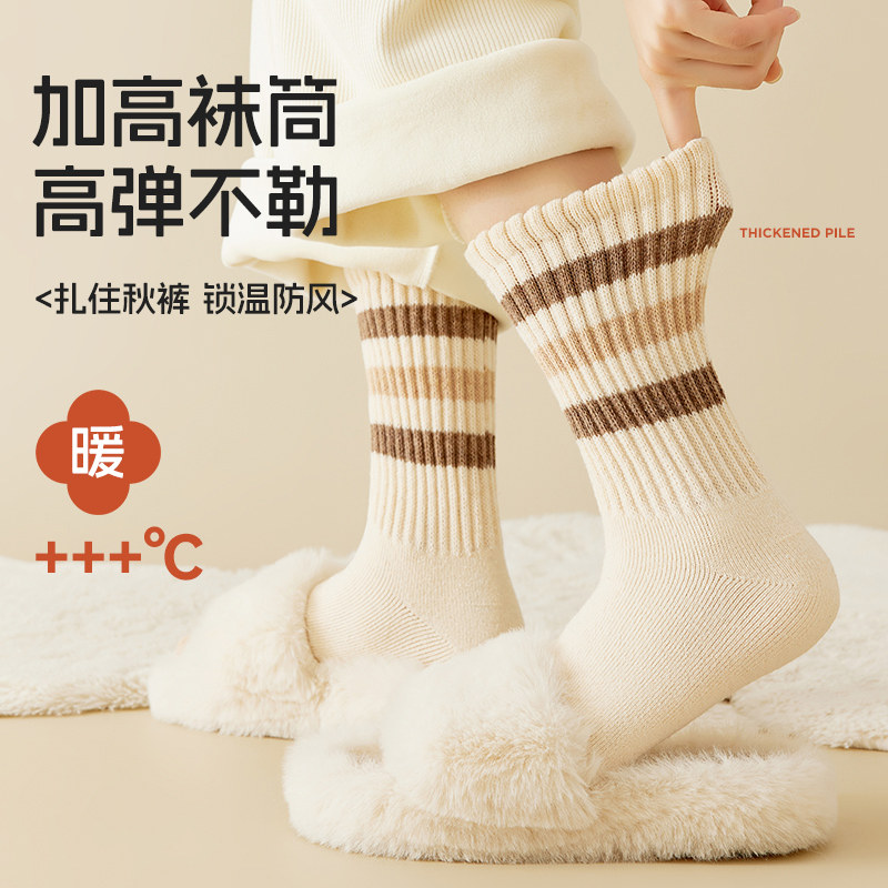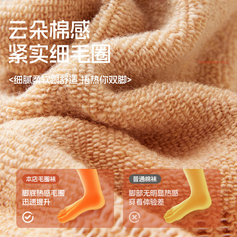 猫人加绒厚袜子女秋冬季保暖毛圈中筒袜女士长筒棉袜2024新款爆款