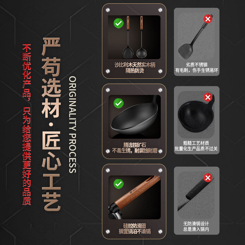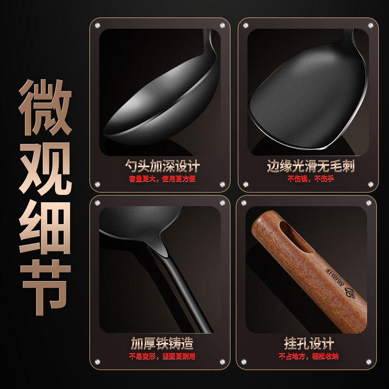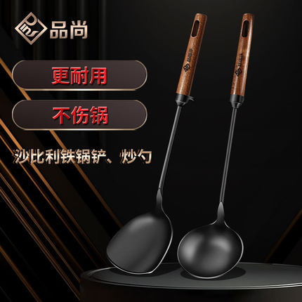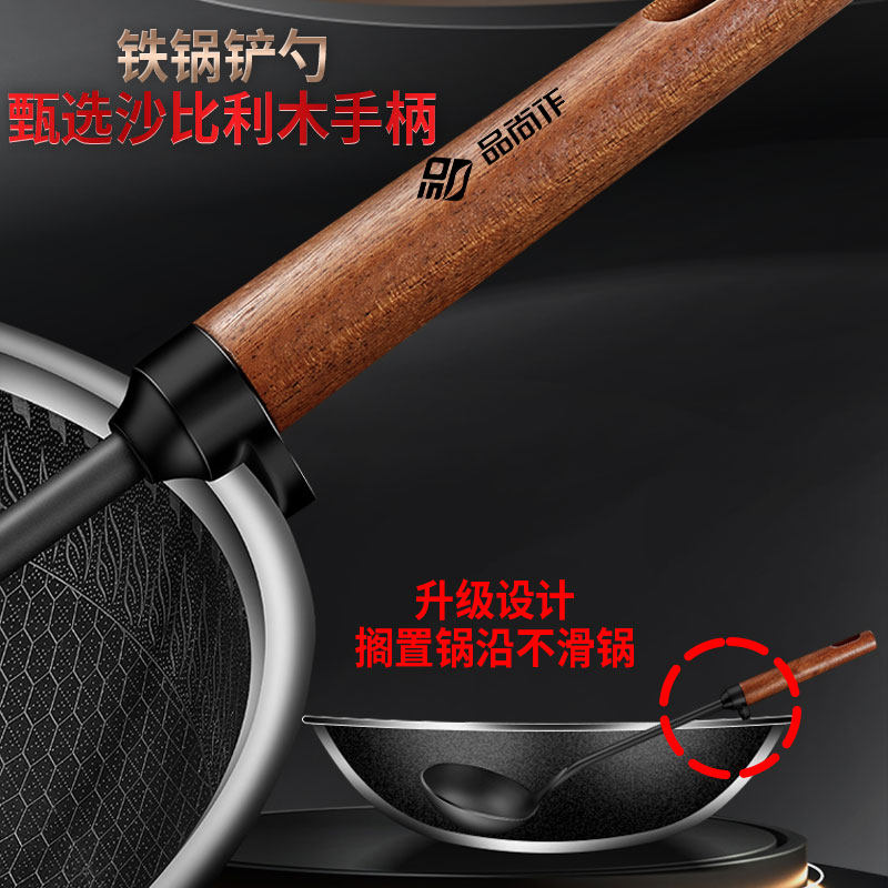 铸铁锅铲家用炒菜铲子厨具不锈钢木柄炒勺炒菜老式铁铲长柄勺套装