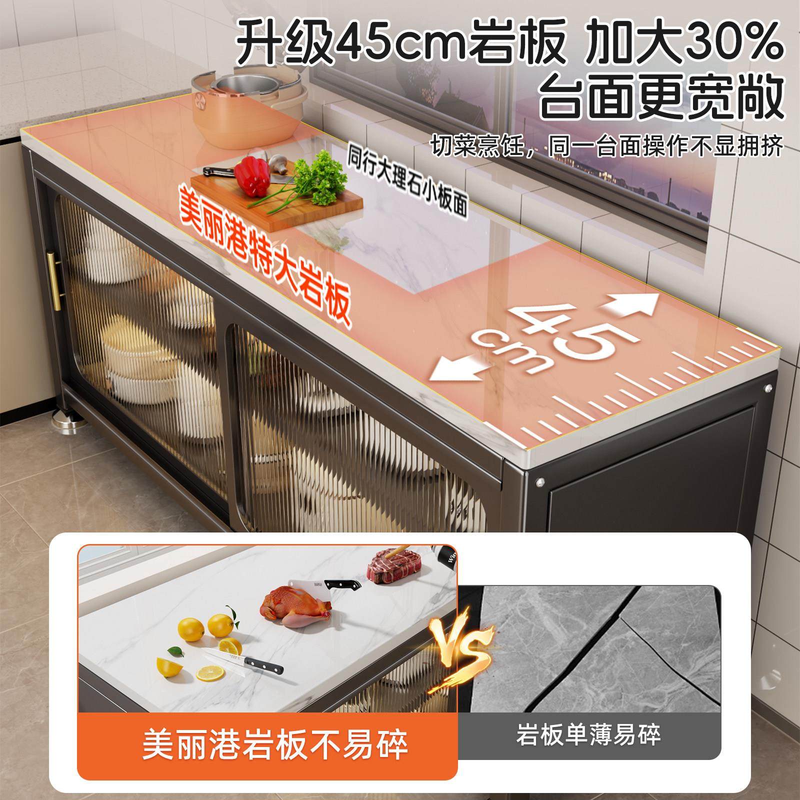 新款厨房置物架家用多功能整体橱柜岩板餐柜落地多层烤箱微波炉收