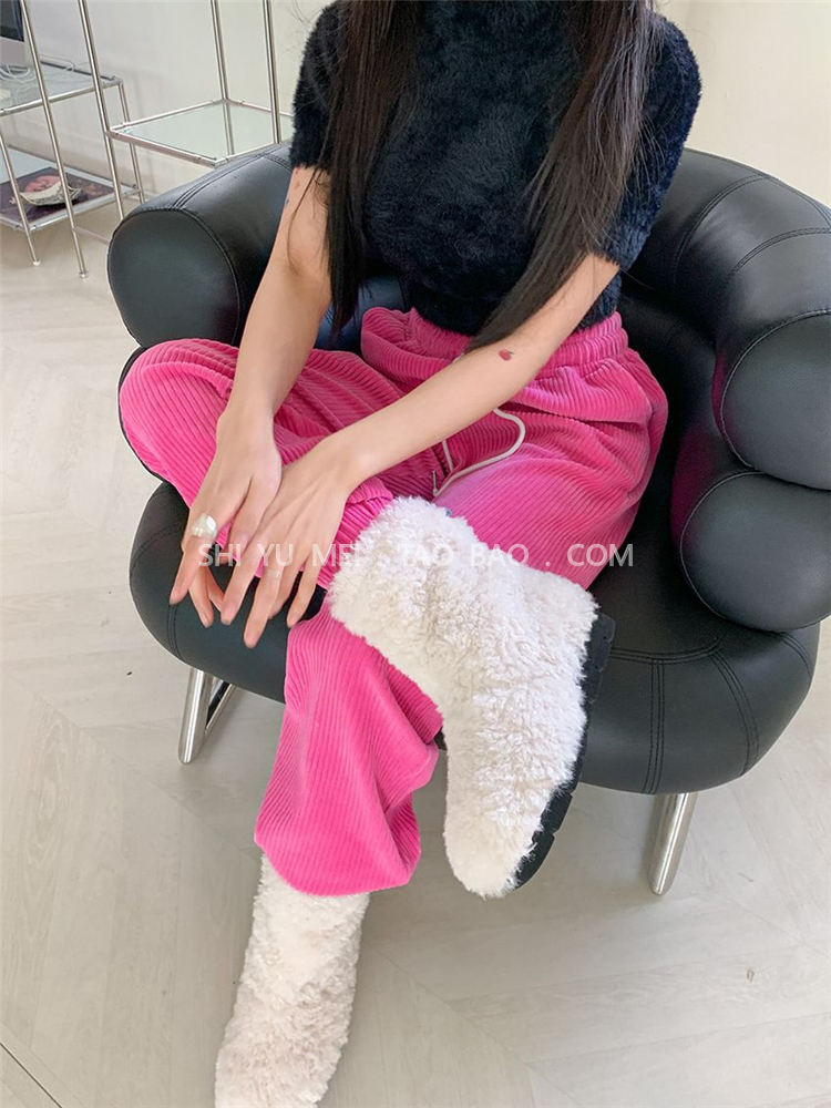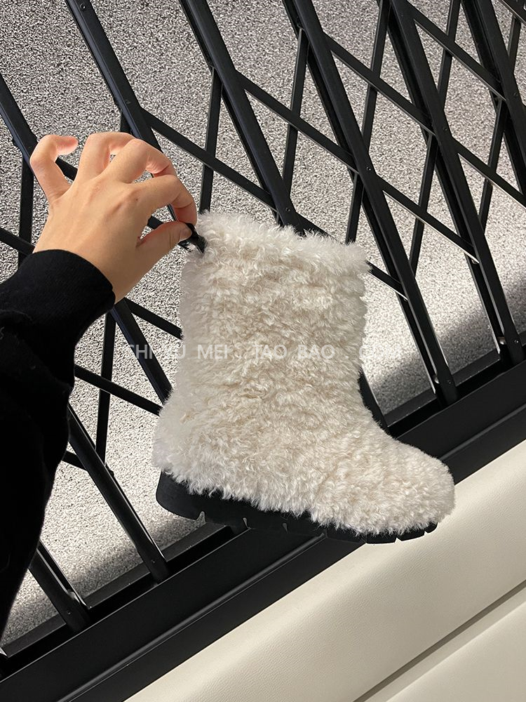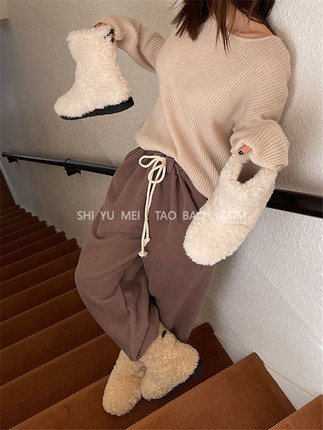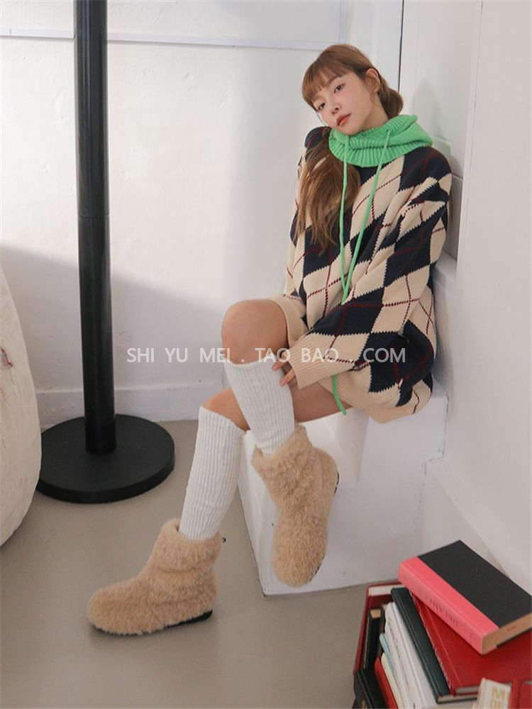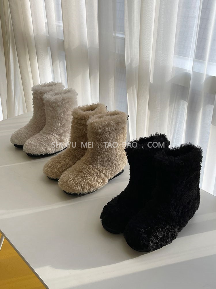 饰与美韩国东大门新款毛毛靴圆头平底加绒保暖套筒短款雪地靴女潮