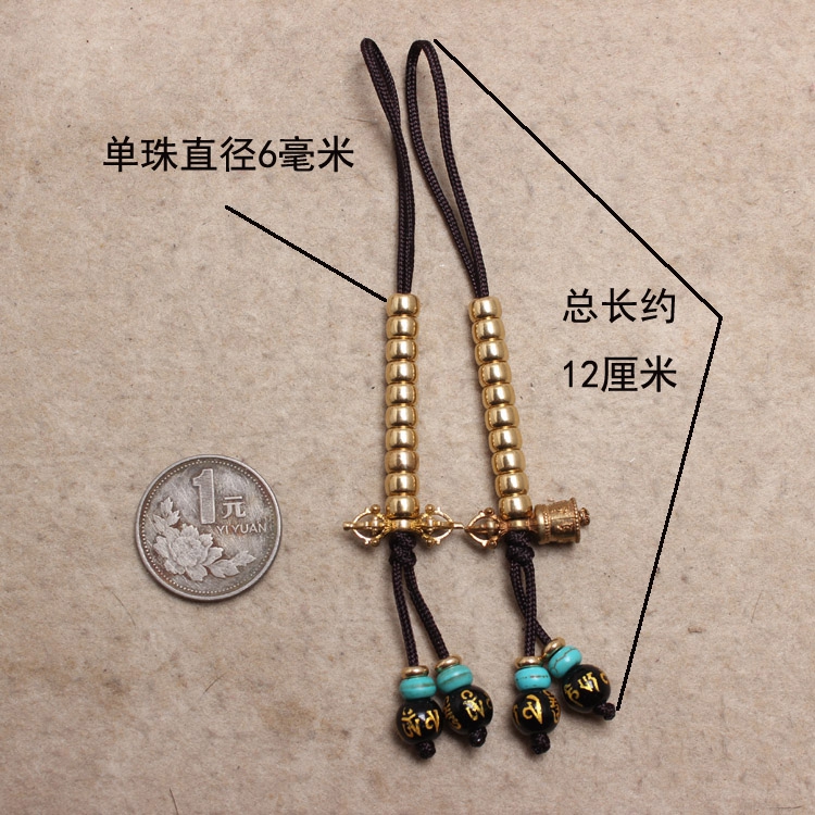纯黄铜佛珠藏式金刚铃降魔杵 星月菩提文玩108颗手串配饰挂件