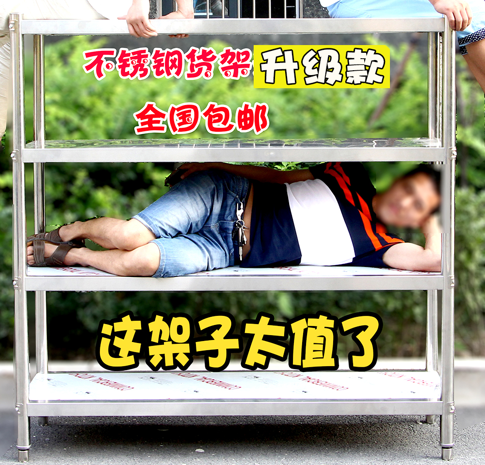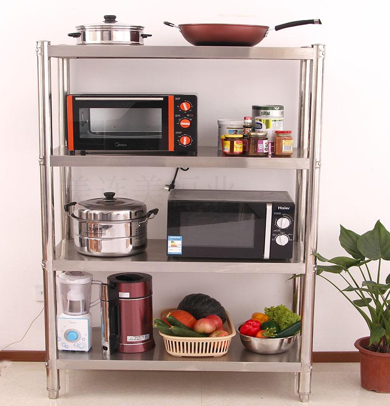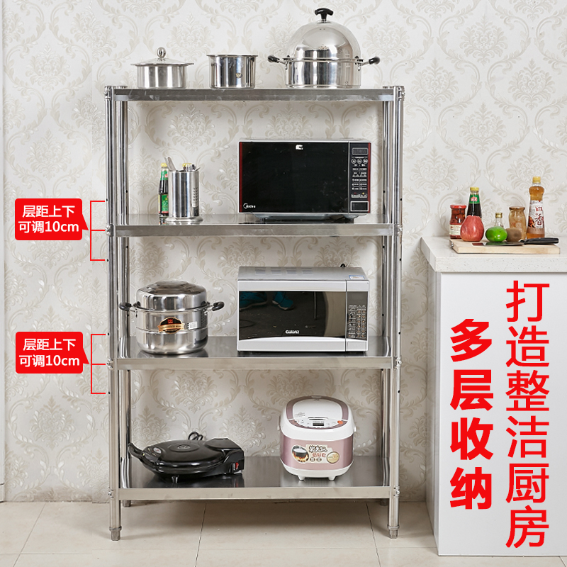 厨房不锈钢货架置物架加厚4层锅架微波炉架阳台储物架收纳杂物架