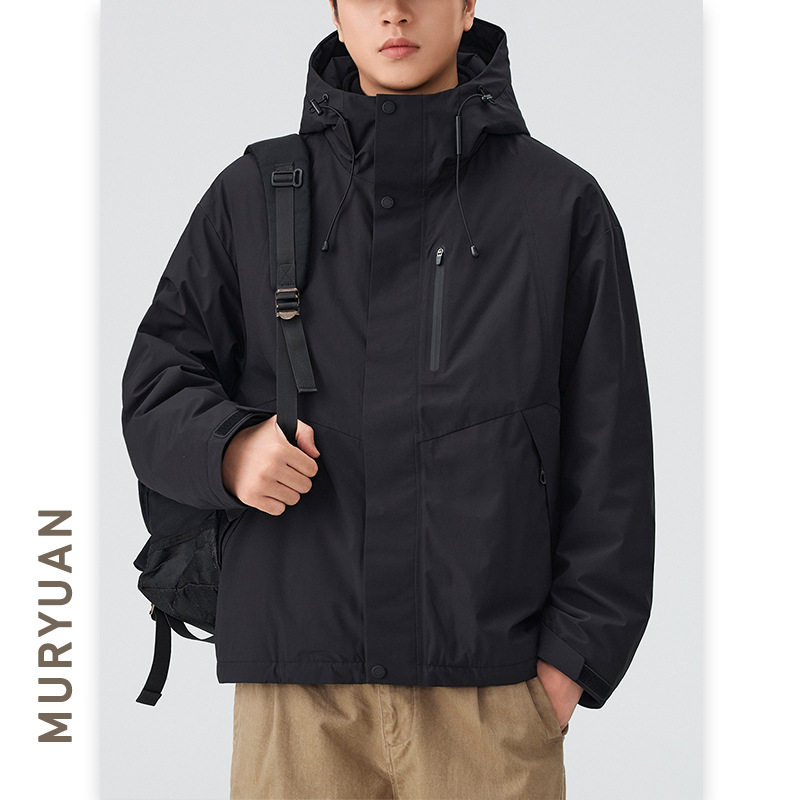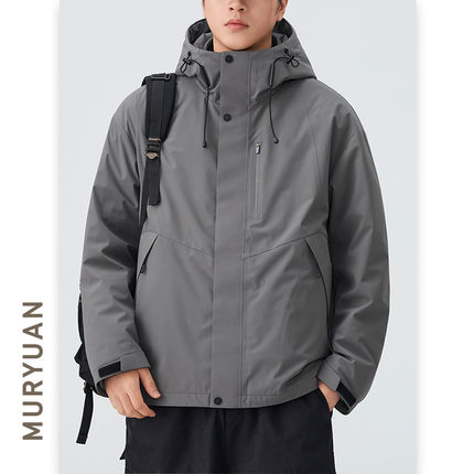 慕沅男装白鹅绒三合一可拆卸内胆羽绒服男士防风连帽工装冲锋衣