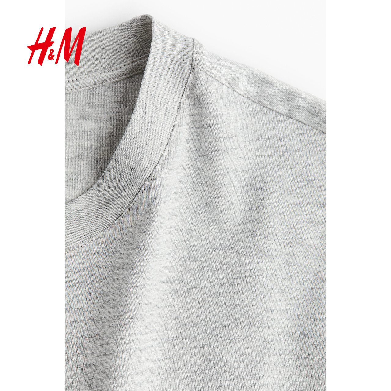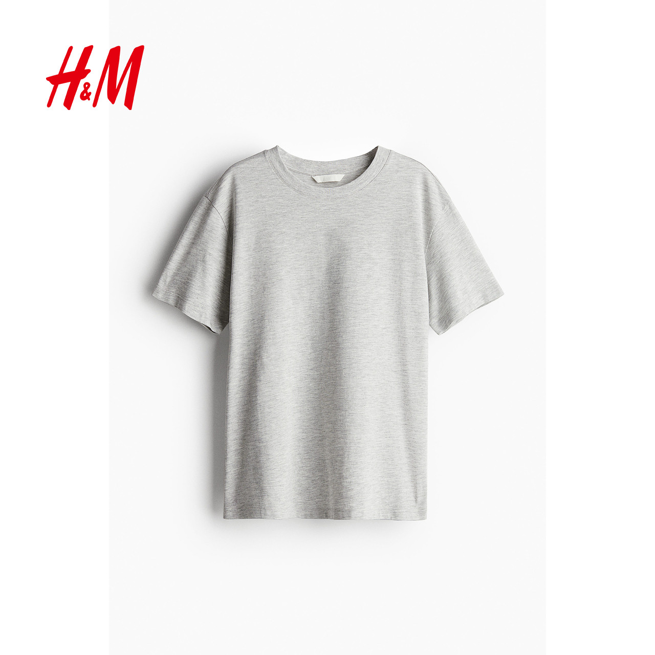 HM女装T恤春季打底衫合身简约休闲时尚圆领短袖内搭上衣0963662