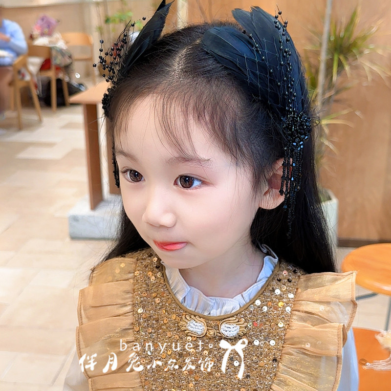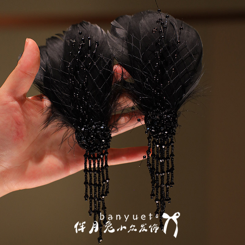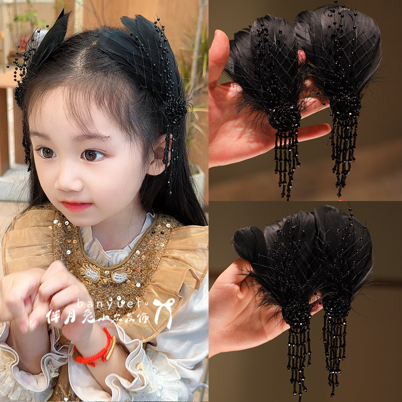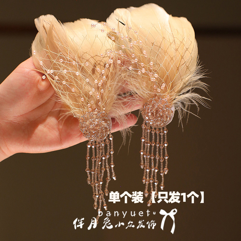超仙羽毛流苏发夹女童汉服头饰气质轻奢侧边发夹氛围感鸭嘴夹头饰