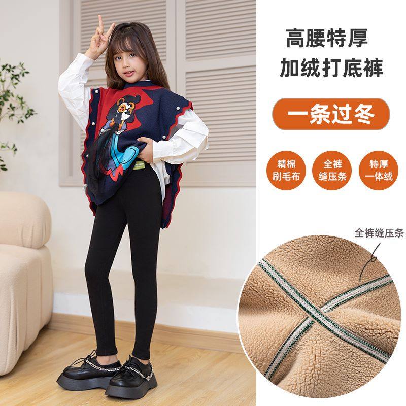 女童冬季加绒加厚打底裤宝宝一体绒高腰特厚保暖裤子儿童外穿棉裤