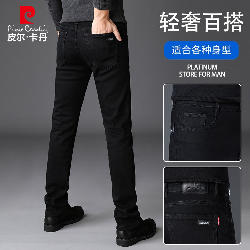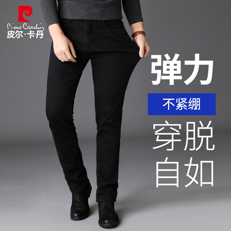 皮尔卡丹2025年秋冬款黑色牛仔裤男士修身小脚商务弹力休闲防褪色