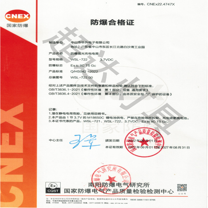 华升黑豹防爆防水防尘手电筒证书强光探照灯化工厂加油站静电充电