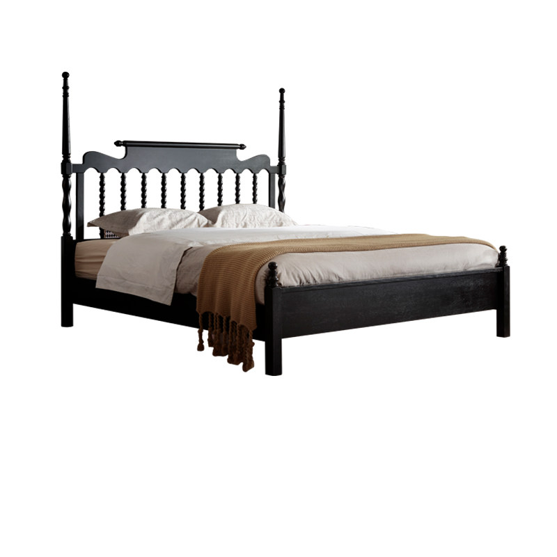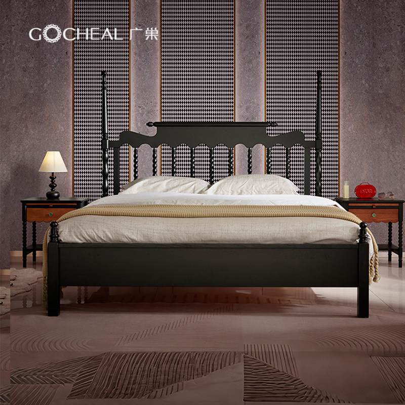 广巢温莎床法式复古实木床双人床卧室家具高圆柱美式简约白蜡木床