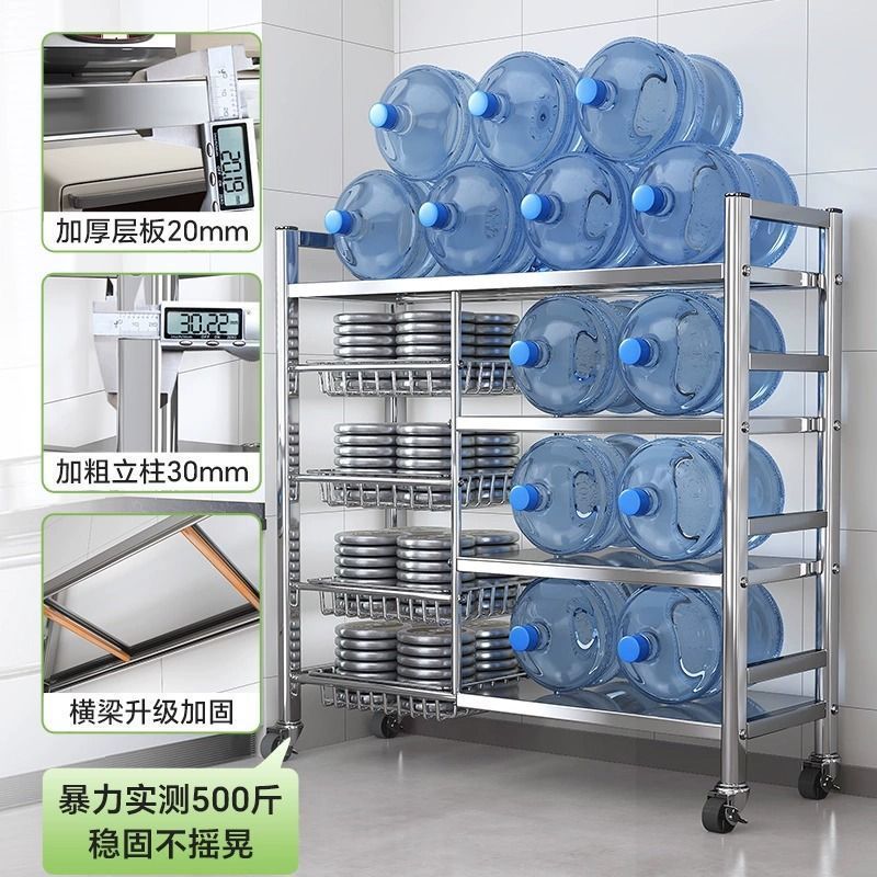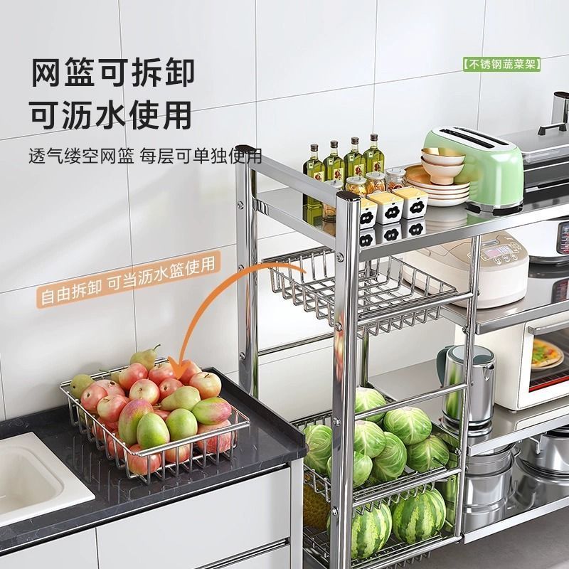 不锈钢厨房置物架菜篮子落地多层多功能微波炉锅具收纳架零食架子
