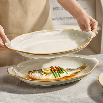 陶瓷鱼盘家用2026新款蒸鱼专用盘子高级感大号鱼碟子双耳鱼碗鱼盆