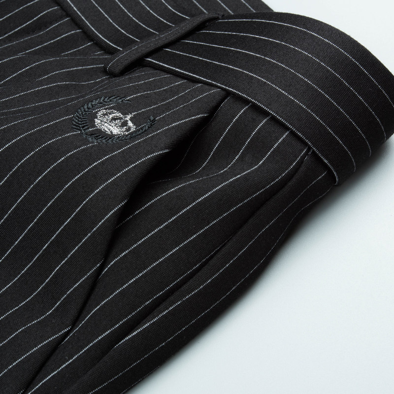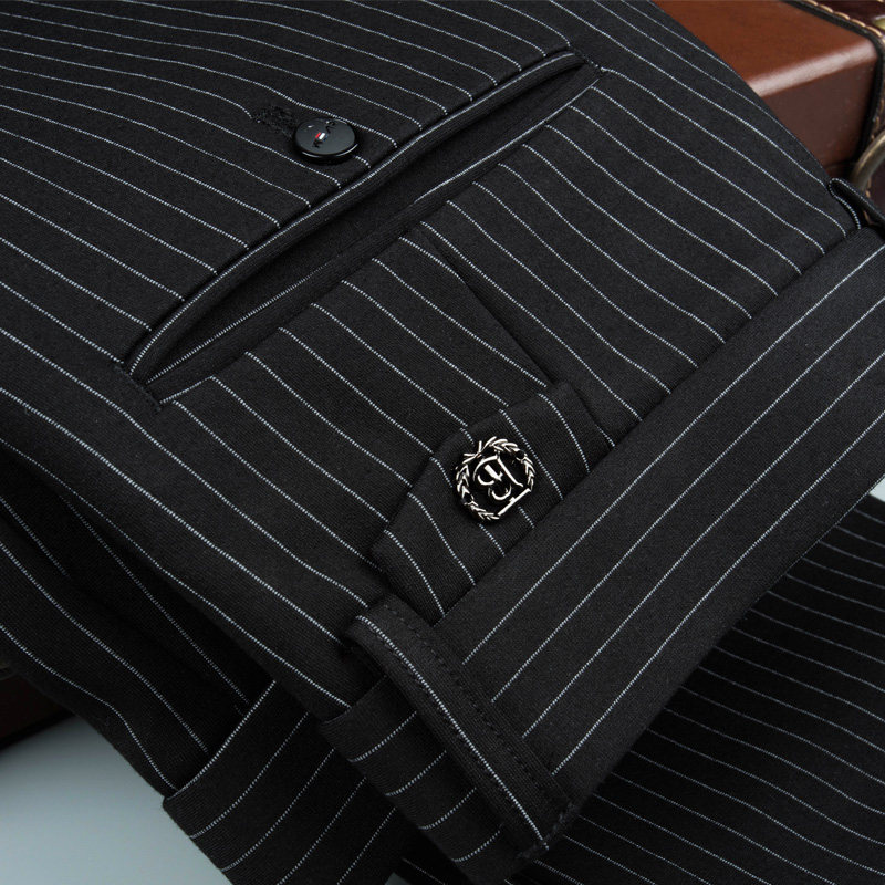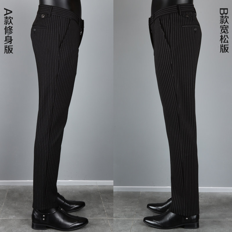 男士休闲裤秋季冬季修身男裤直筒弹力商务男装西裤黑色条纹裤子男