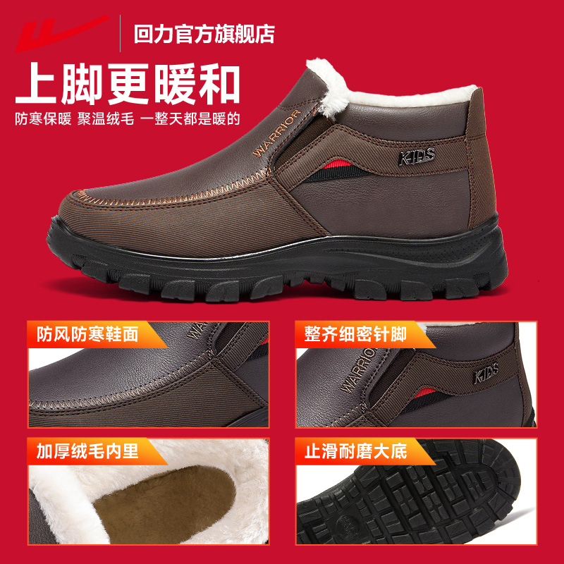 回力官方旗舰店爸爸棉鞋男款冬季加绒2025新款防水中老年雪地靴男