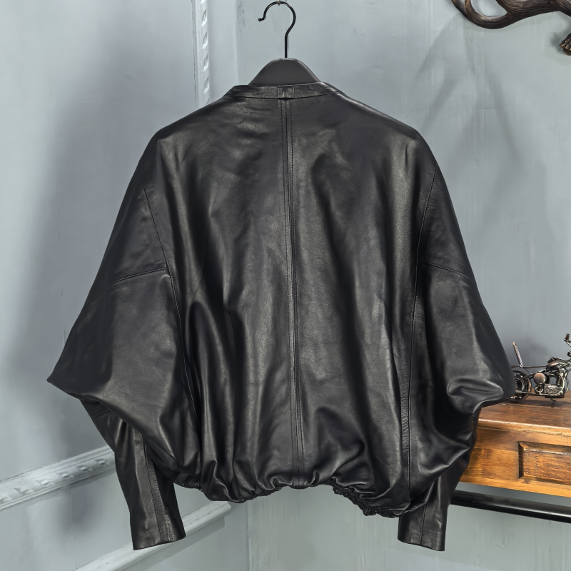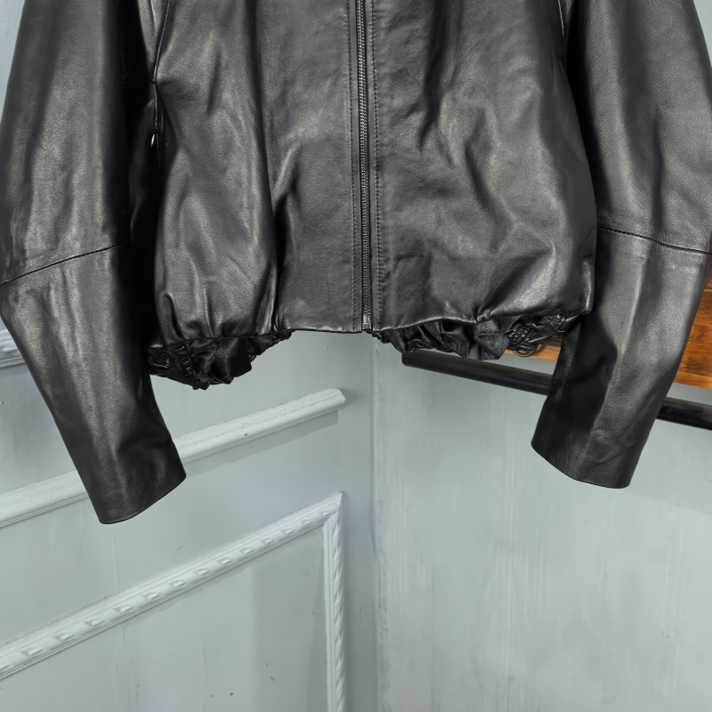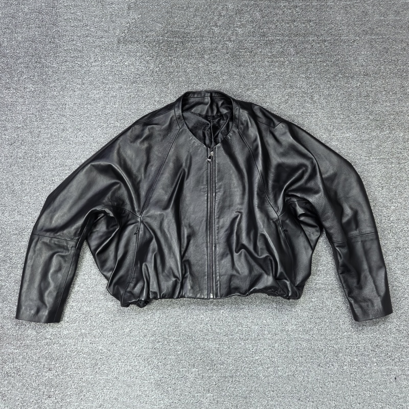 韩版2025秋季新款真皮绵羊皮衣女休闲宽松短款夹克外套蝙蝠袖