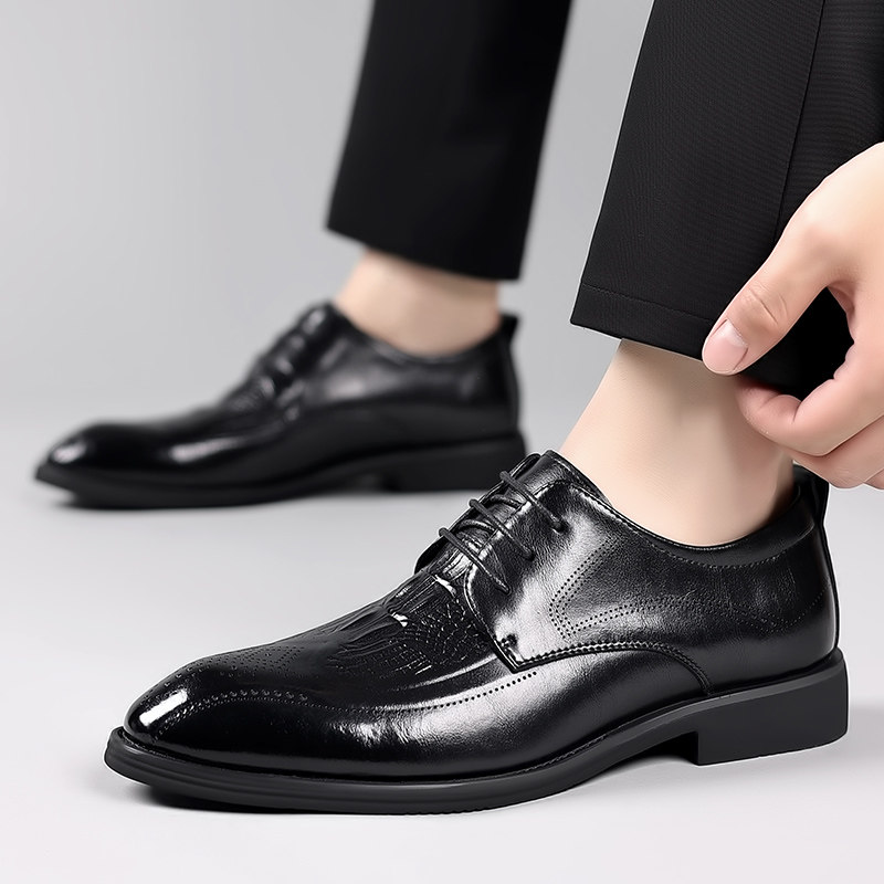 2026年春季新款商务皮鞋男布洛克雕花尖头正装皮鞋通勤男鞋高级感