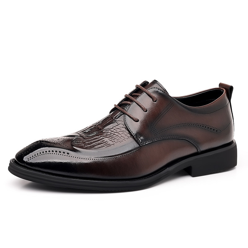春季新款男士布洛克尖头正装皮鞋