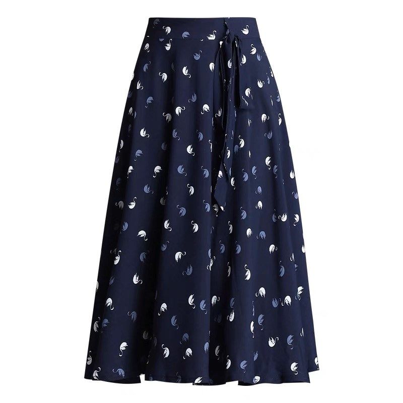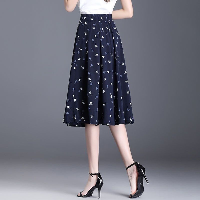 碎花a字裙半身裙中长款夏季薄款雪纺纱裙显瘦洋气大摆百褶裙子女