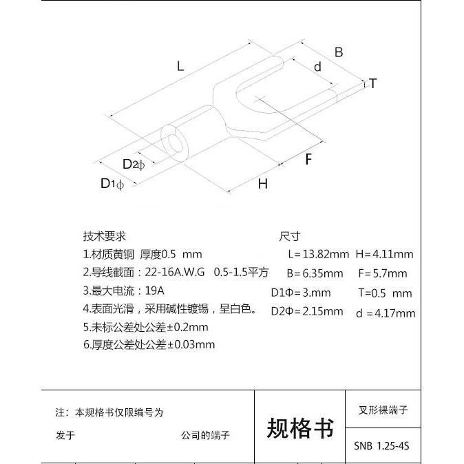 SNB1.25-4S冷压接线端子1-4接头铜鼻Y形U型裸端子线耳1000只包邮