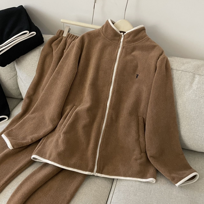 双面绒情侣睡衣女秋冬季加绒保暖亲肤暖绒简约休闲可外穿家居服男