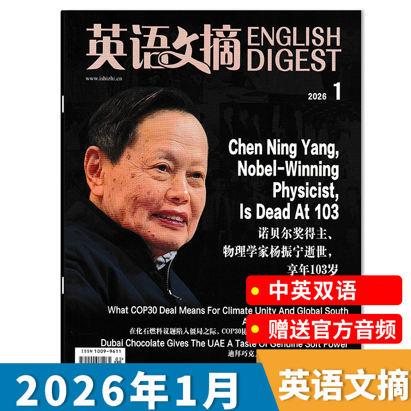 【单期可选】英语文摘杂志2026年2月大学生四六级考试雅思托福参考教辅中英文版双语新闻周刊扫码听音频书期刊2023年全年订阅