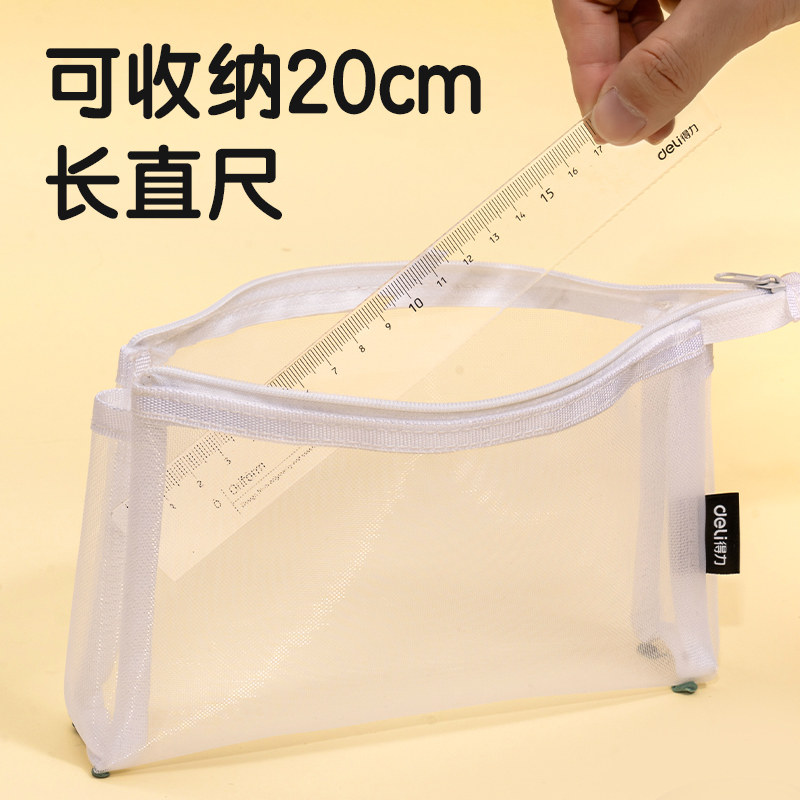 得力网纱笔袋可放直尺
