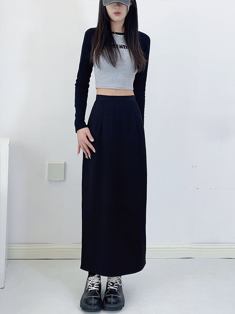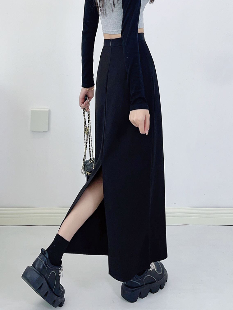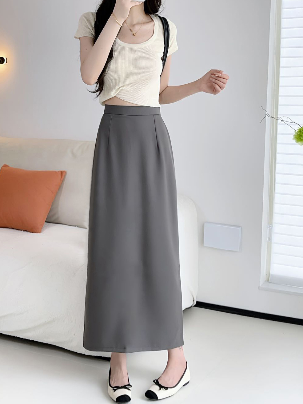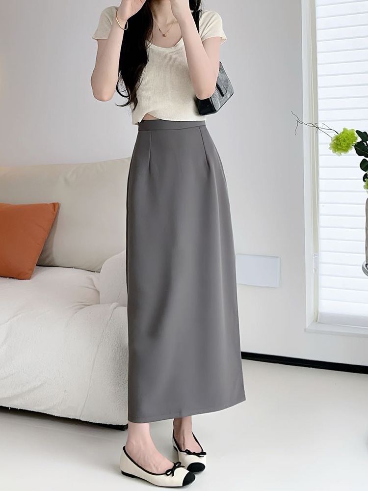 灰色西装半身裙长裙女春夏秋款高腰显瘦后开叉黑色直筒裙子大小码