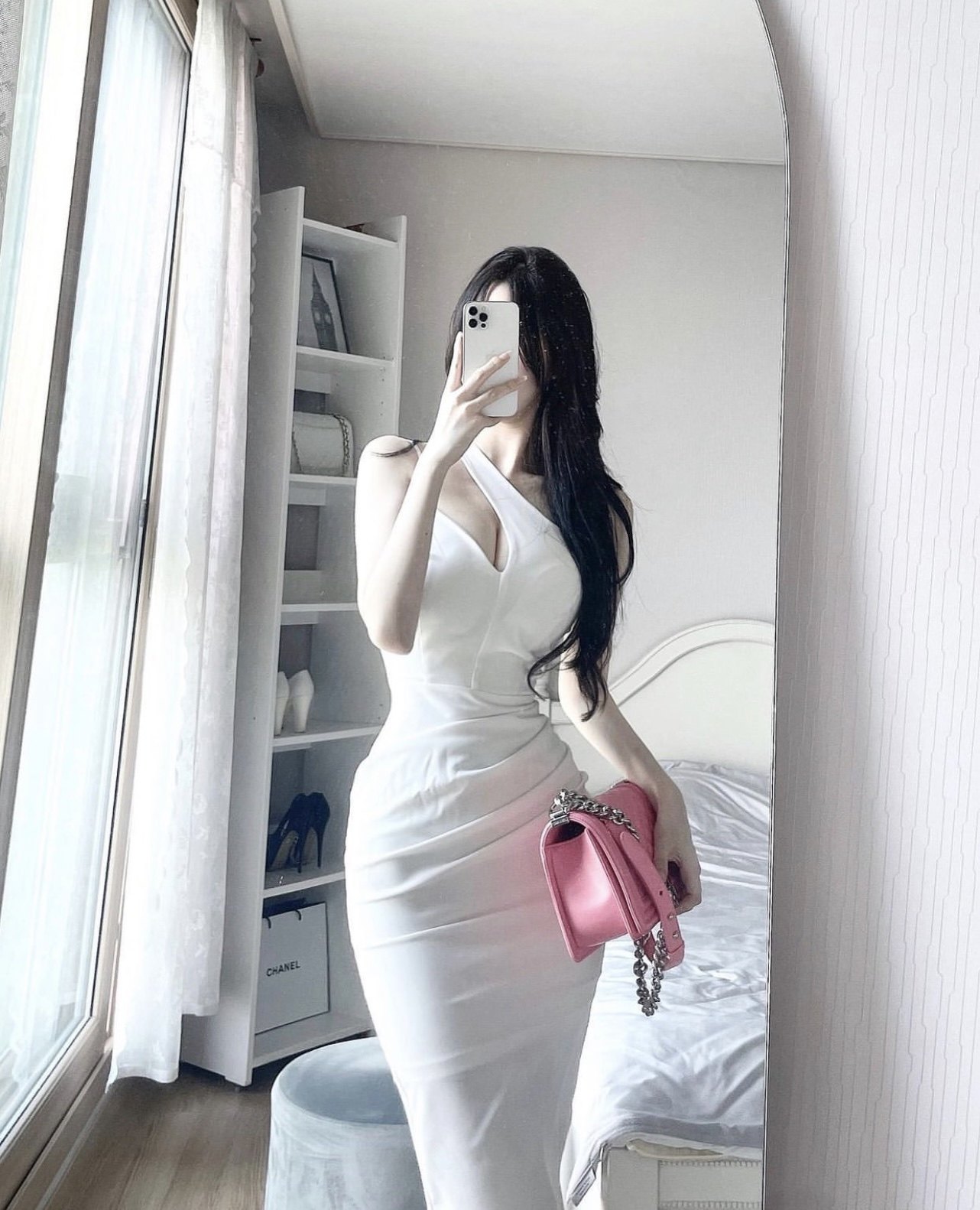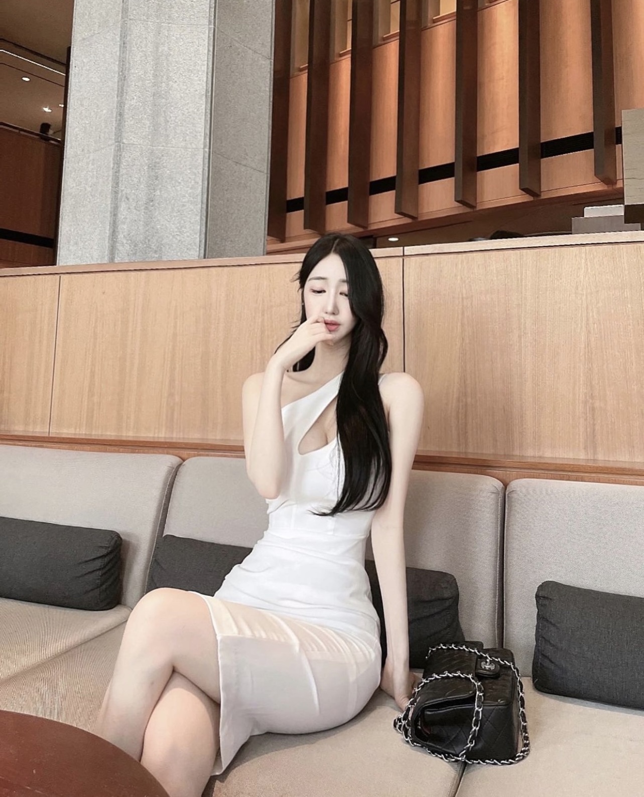 韩国江南美人性感小心镂空斜领