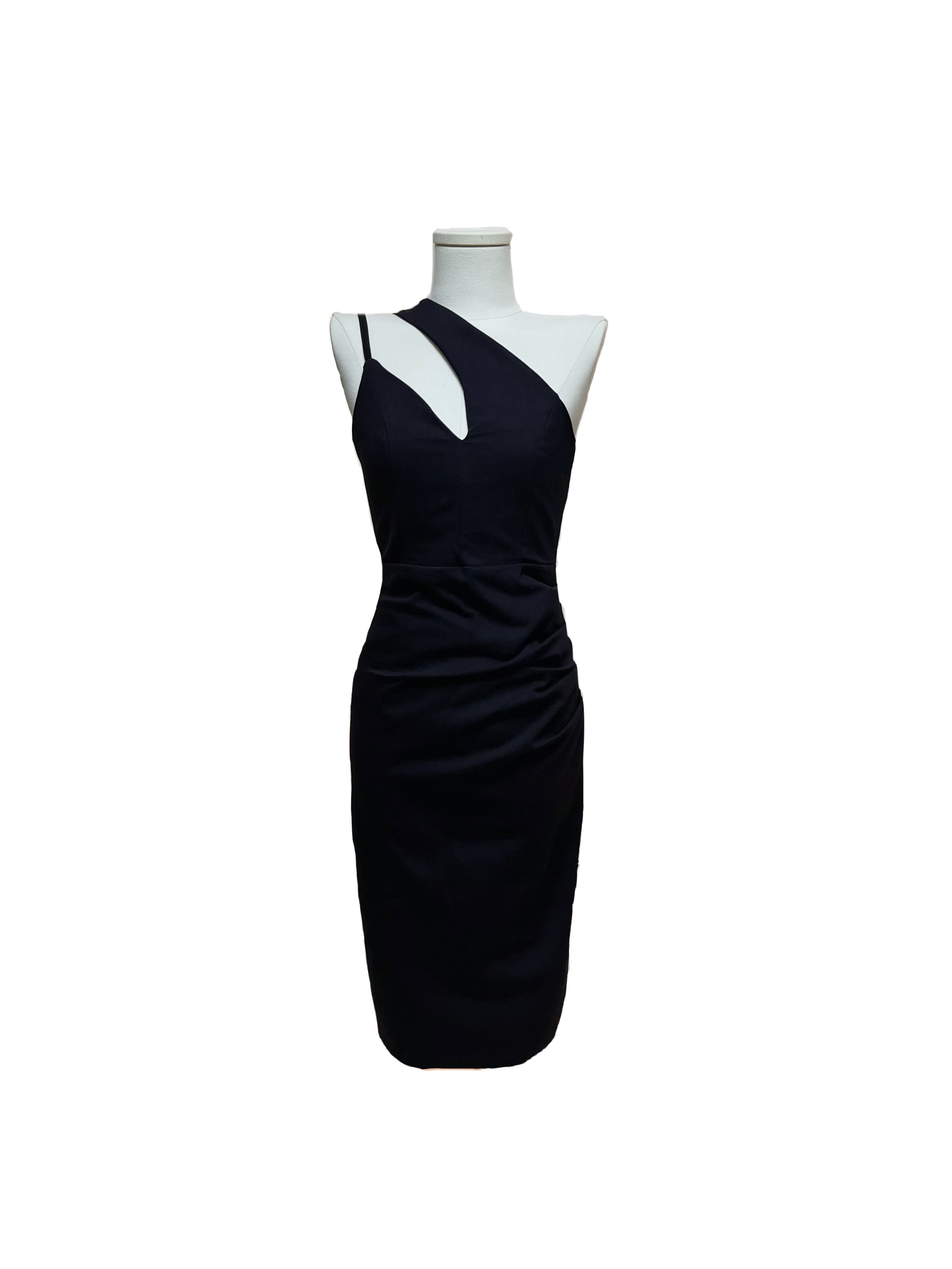 韩国江南美人性感小心机镂空斜领不对称设计感吊带高腰修身连衣裙