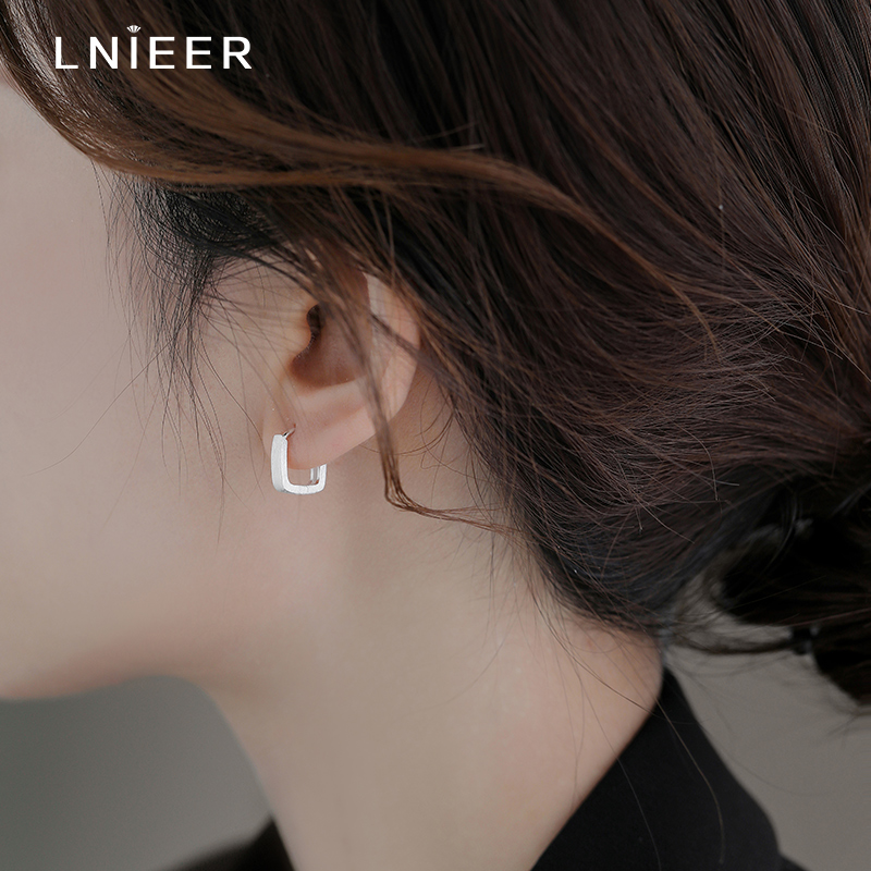 S925纯银磨砂方形耳圈耳环小众设计感拉丝耳扣冷淡风2025新款耳饰