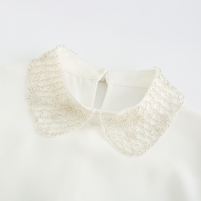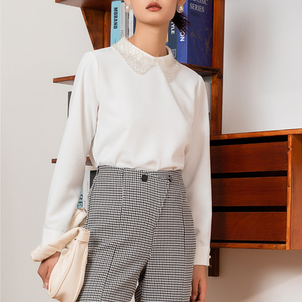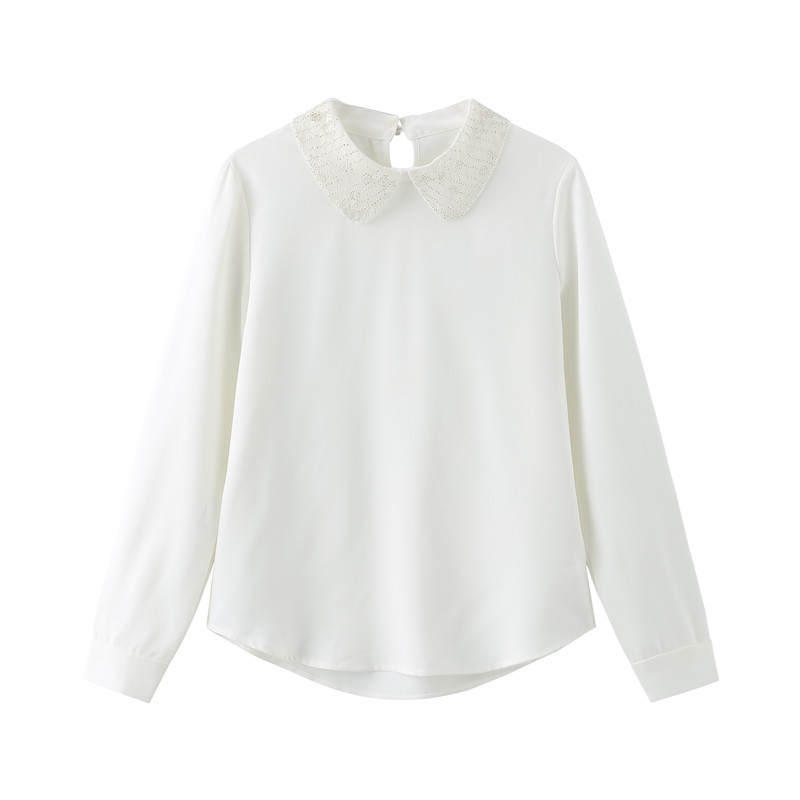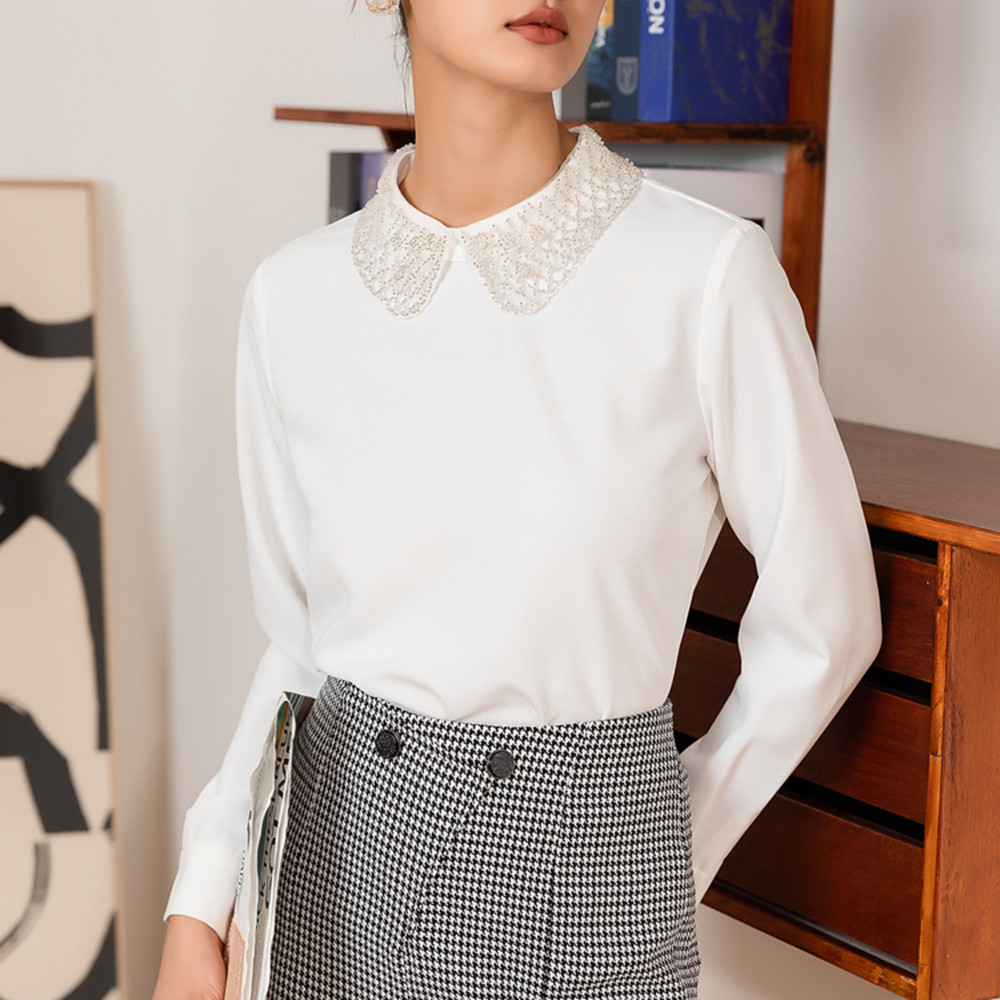 velwin蔚雯新款高级感娃娃领衬衫女通勤气质雪纺白色衬衣早春上衣
