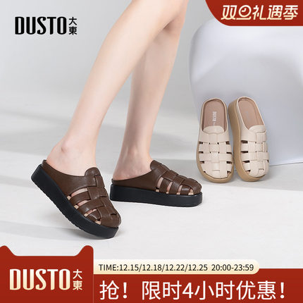 大东时装拖鞋女鞋2025夏季新款休闲平底中跟套脚圆头编织X0197