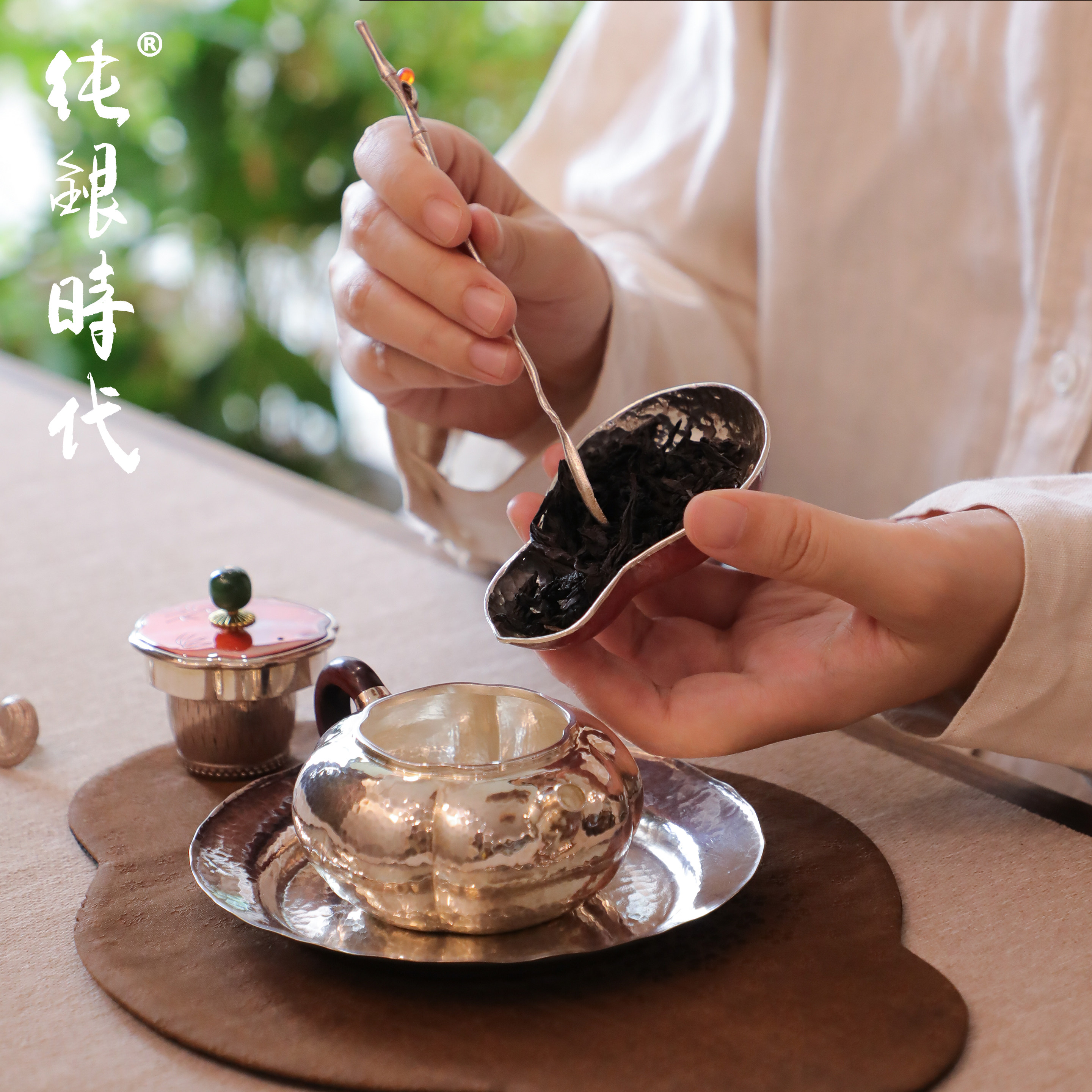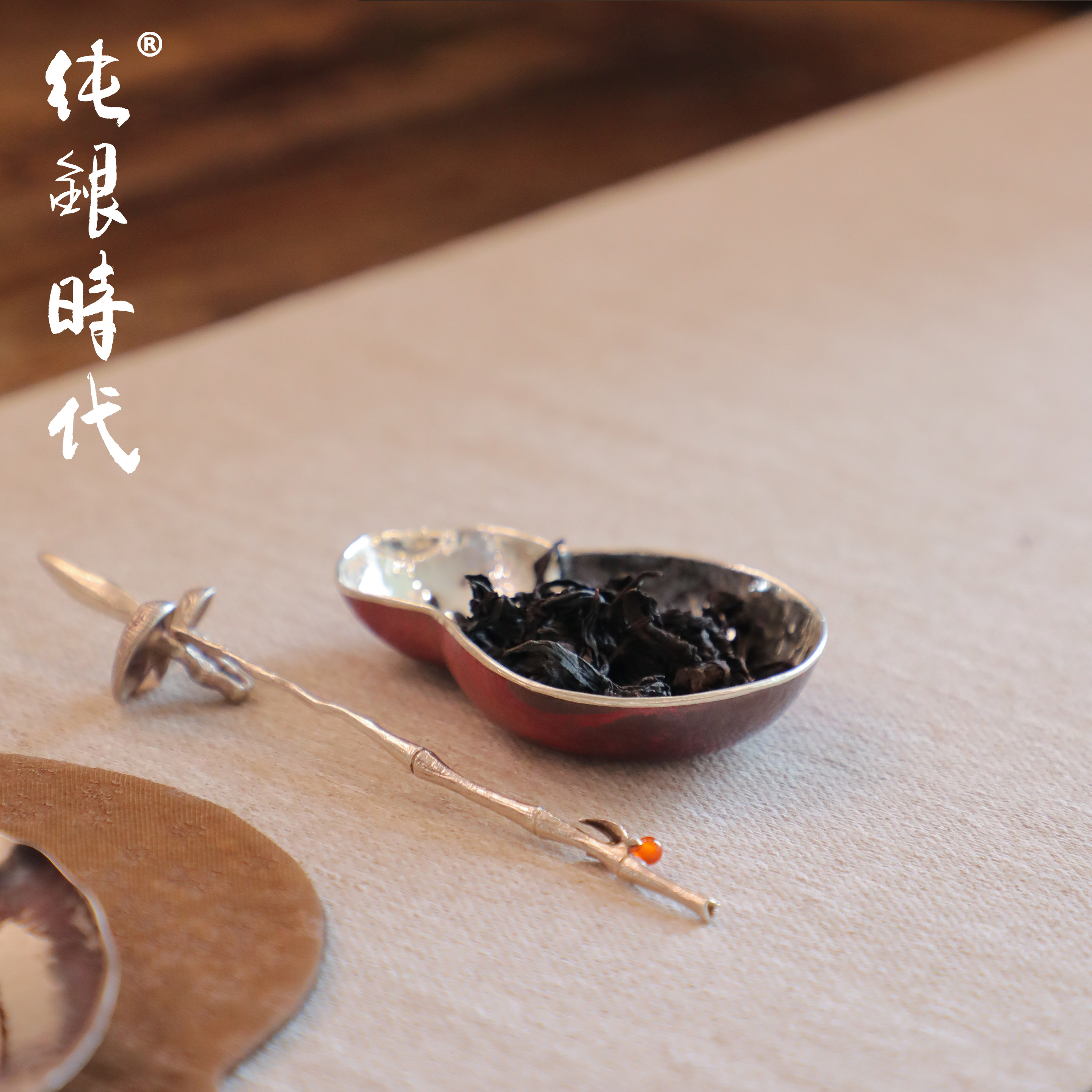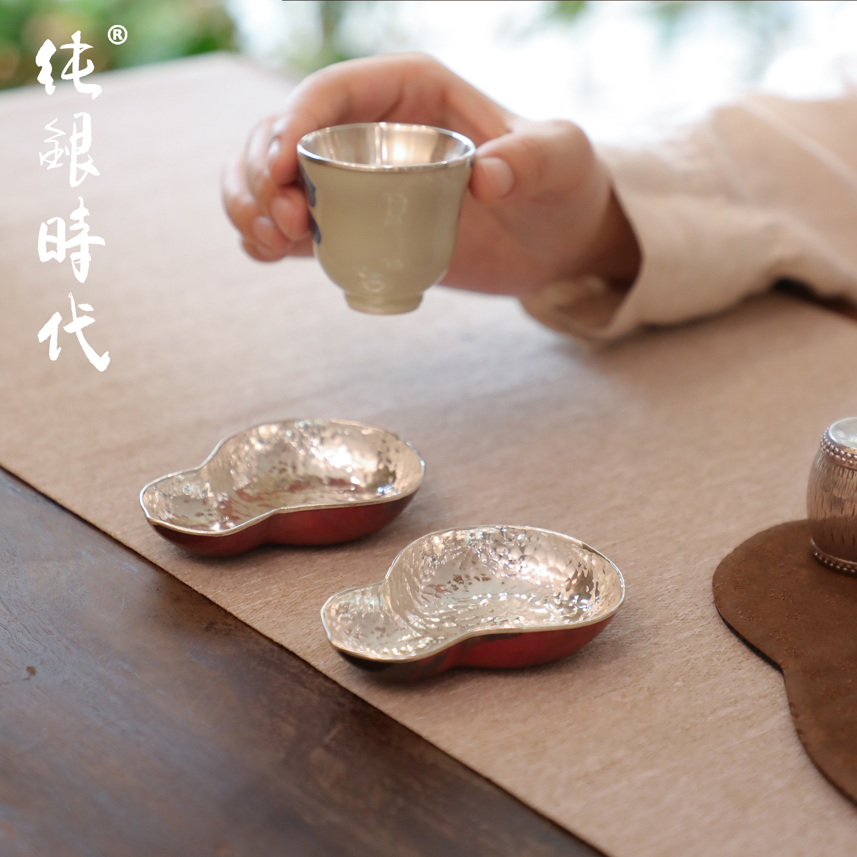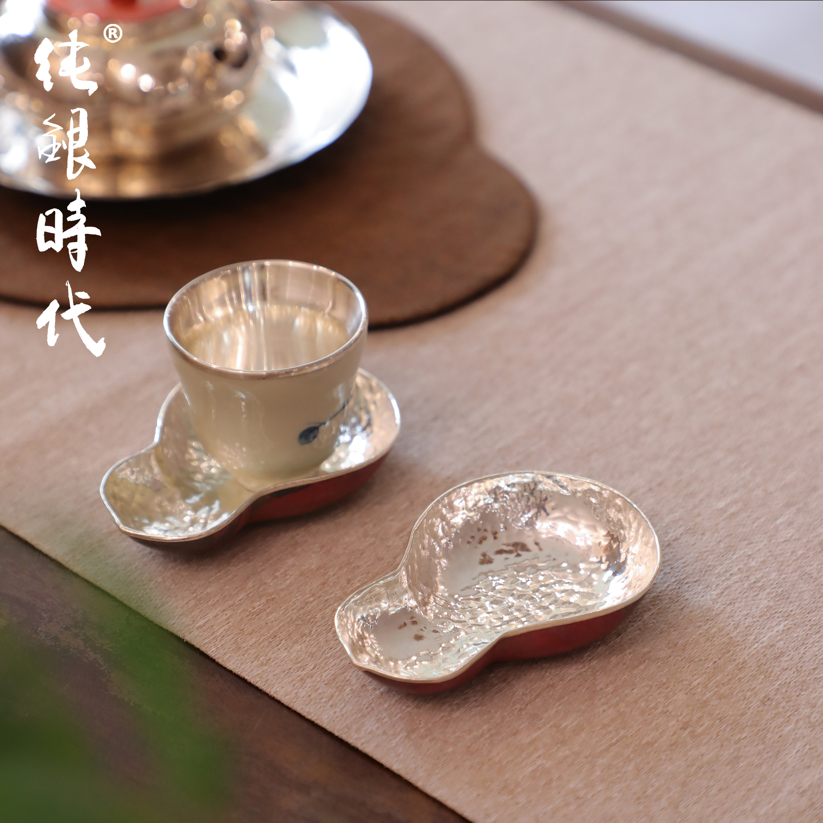 纯银时代紫铜包银手工茶托杯托