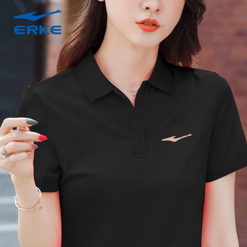 鸿星尔克冰丝短袖t恤女黑色2026新款夏季女士薄款红星旗舰店衣服