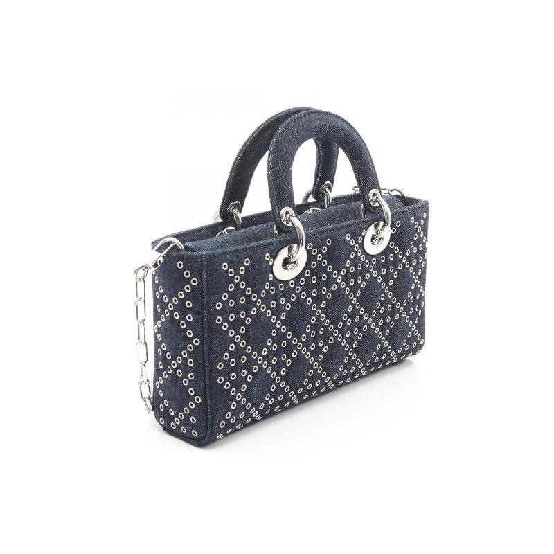中古Dior迪奥女包A级95新Handbag手包牛仔布斜挎包蓝色