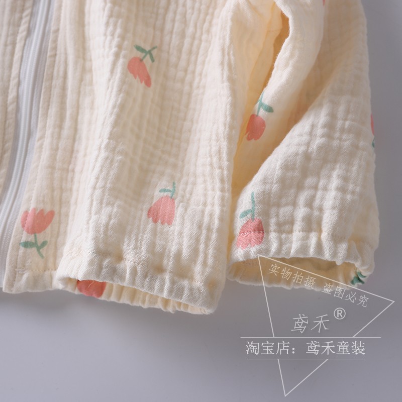 儿童夏季空调开衫外套婴儿女童薄款透气防晒衣纯棉薄纱布柔软轻薄
