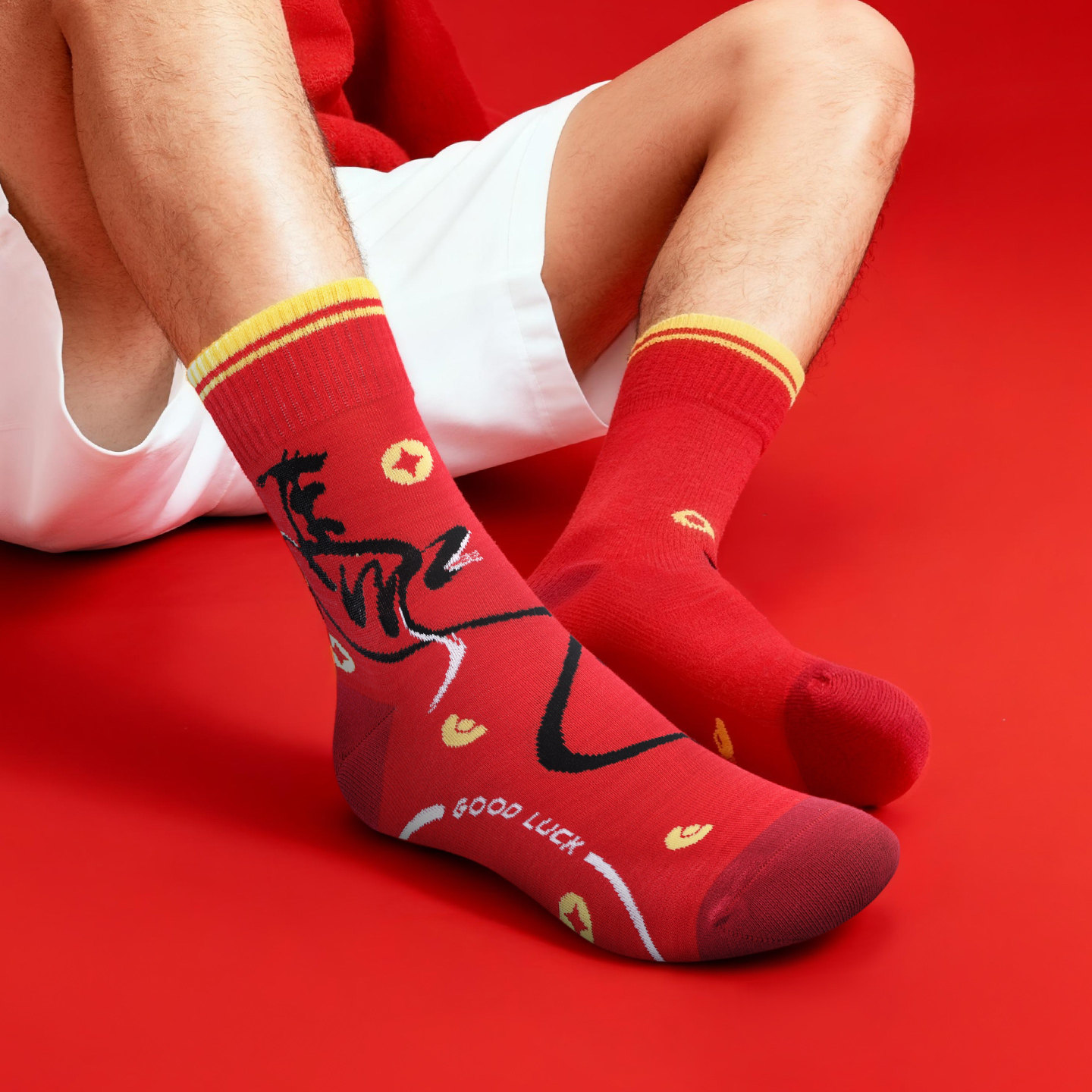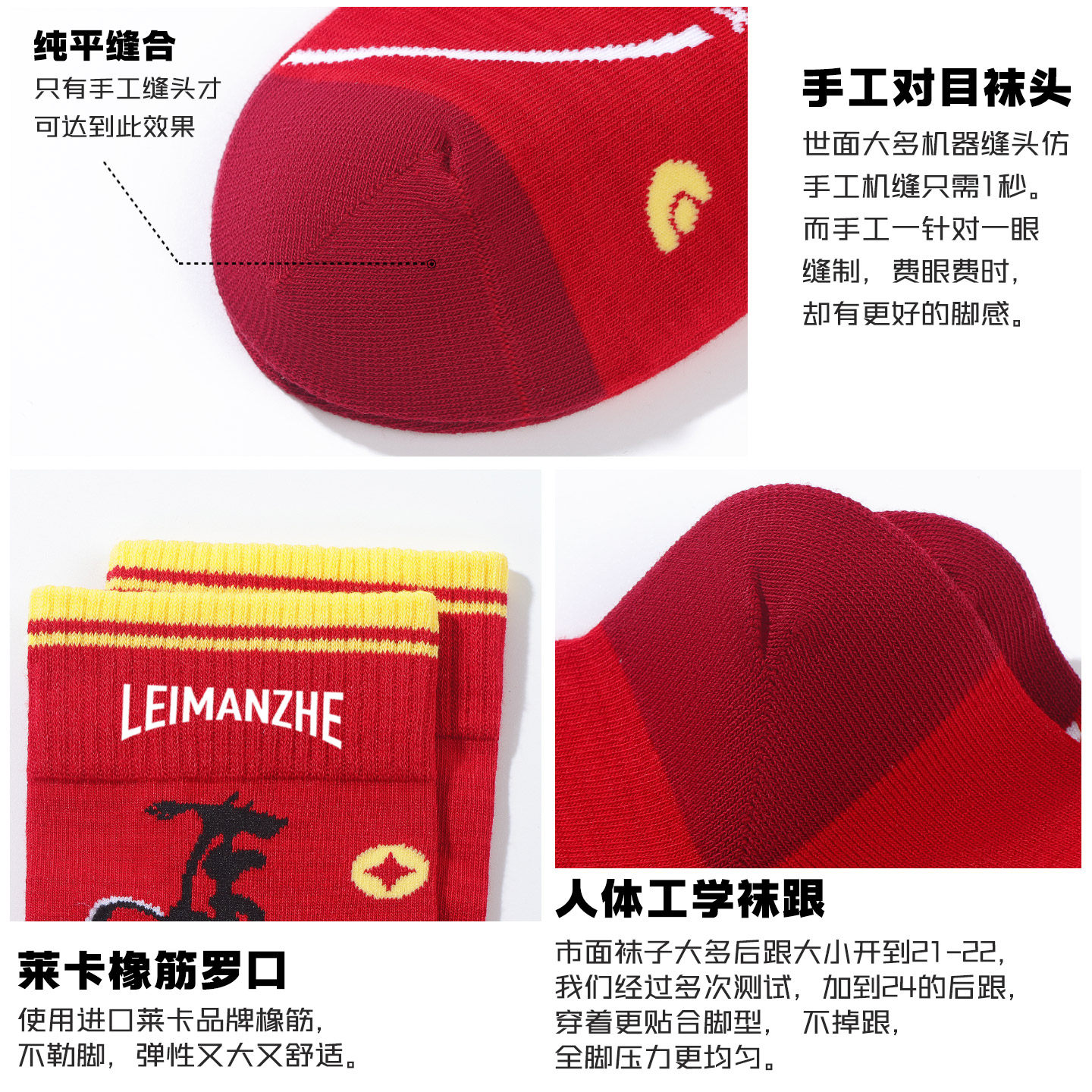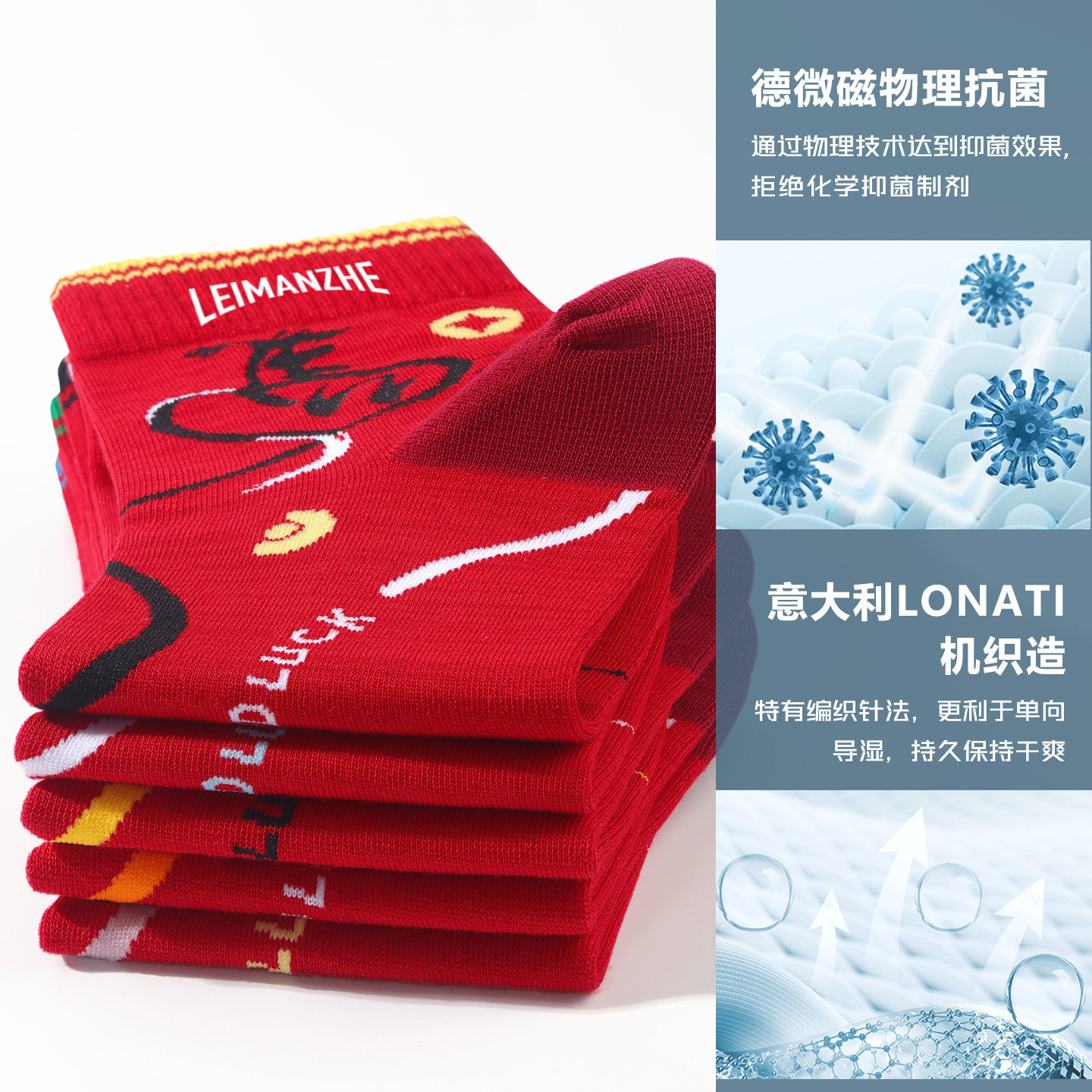 雷曼哲艾草棉袜马年本命年袜子男女士红色中筒袜长袜防臭吸汗短袜