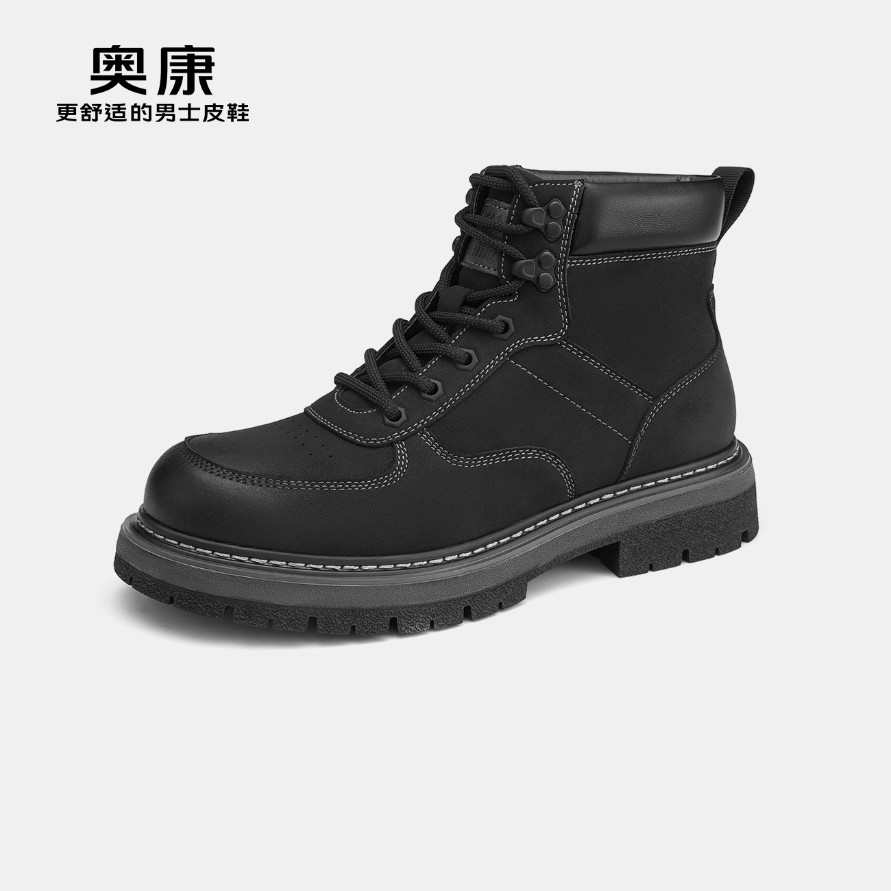 奥康冬季新款马丁靴男增高厚底工装靴耐磨防滑户外休闲靴子潮